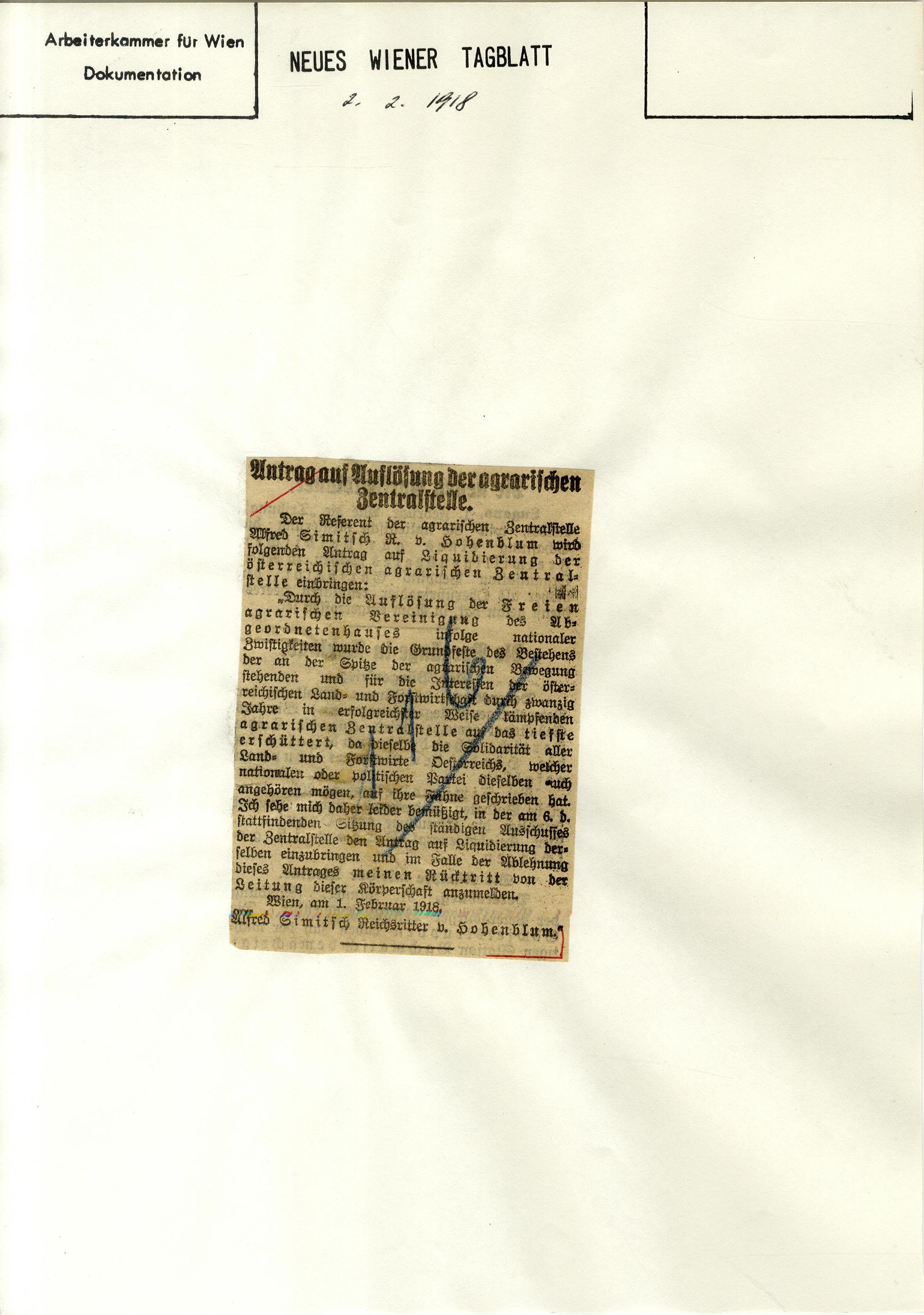 1918: Kriegsverwaltung : [Sammlung von Zeitungsartikeln]