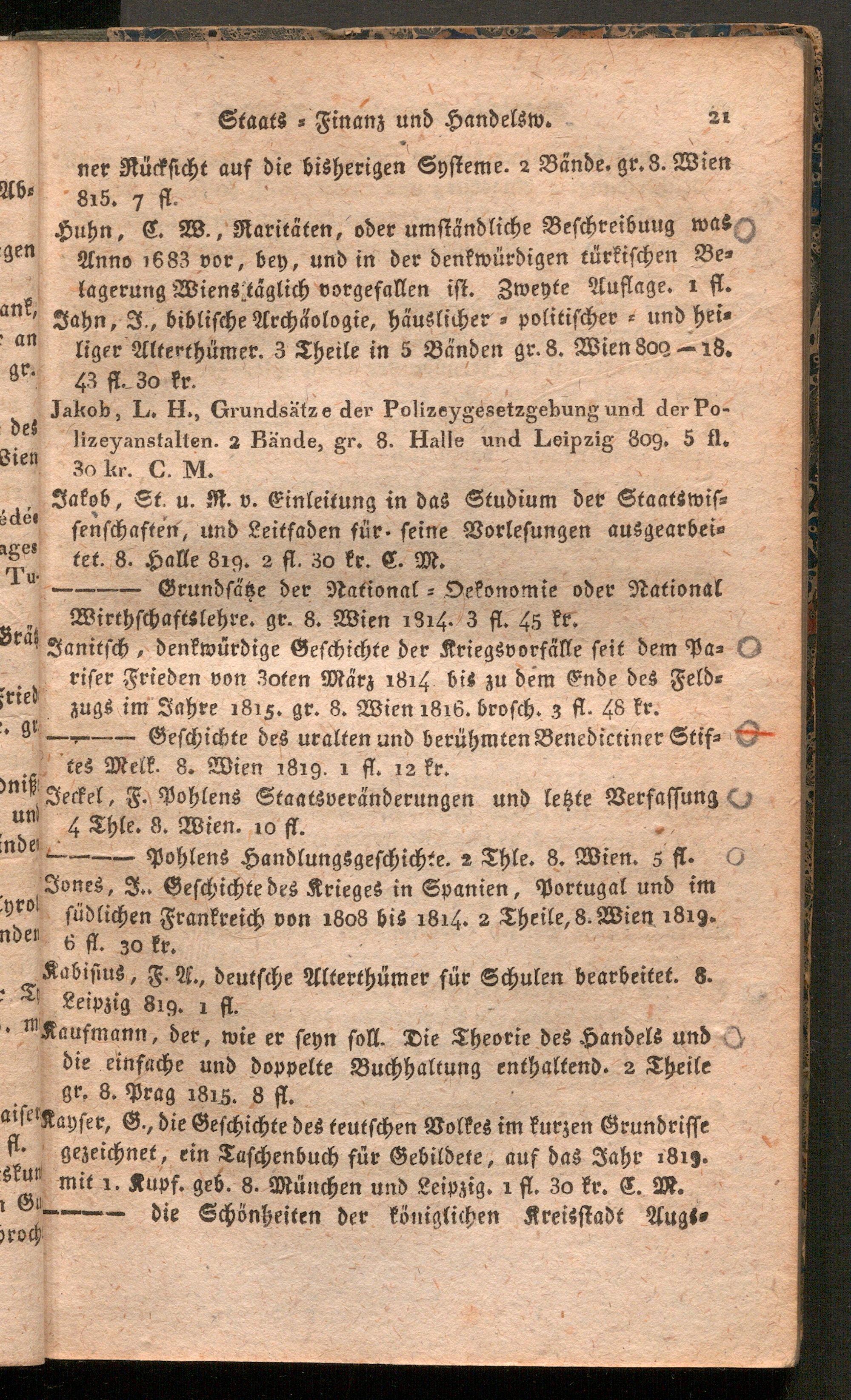 Verzeichniß der Verlags- und Commissions-Bücher aus allen Theilen der Wissenschaften welche in der G. Ritter von Mösle sel. Witwe Buchhandlung in Wien am Graben Nr.1144 zu haben sind