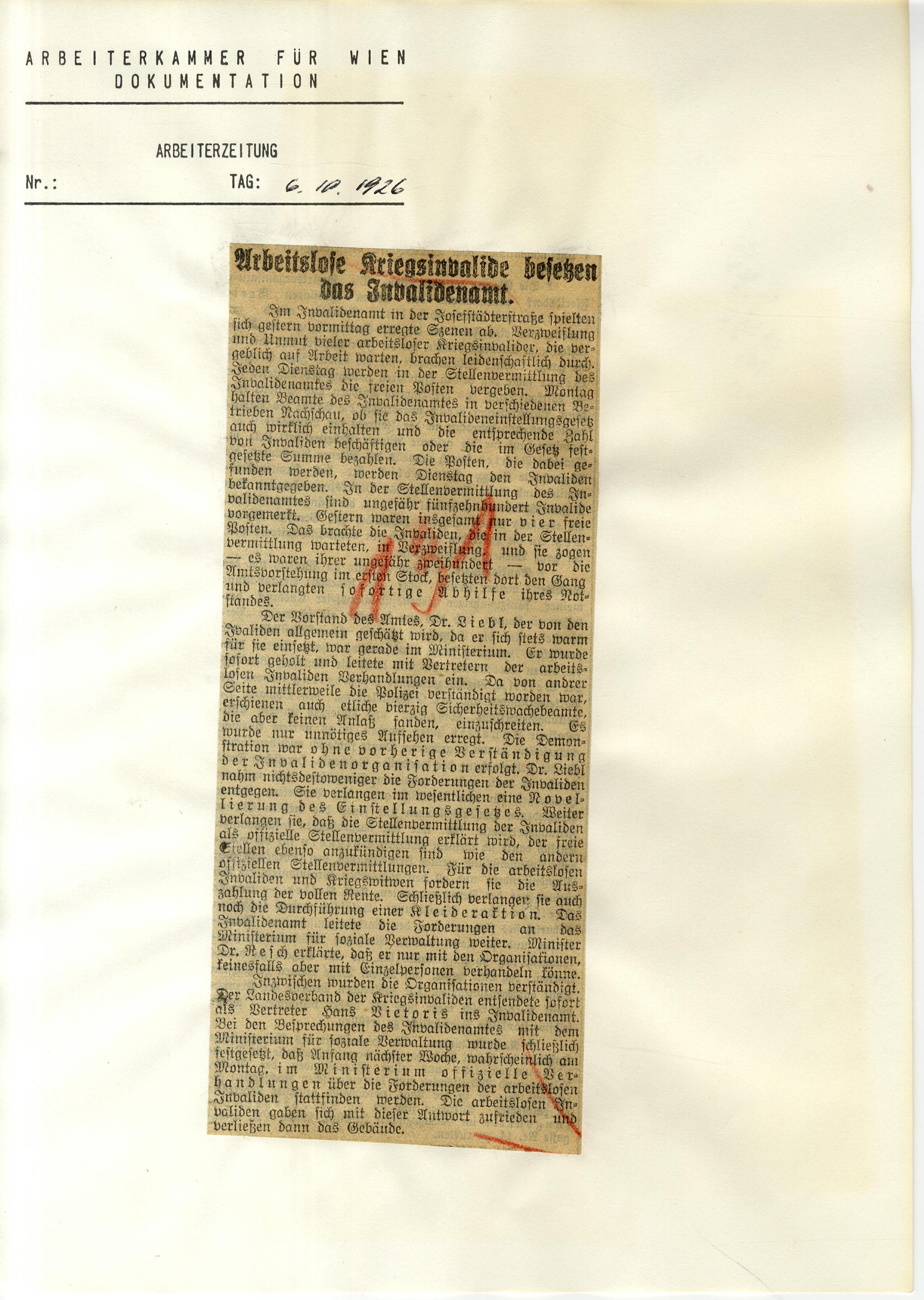 1926: Kriegsopferverband : [Sammlung von Zeitungsartikeln]
