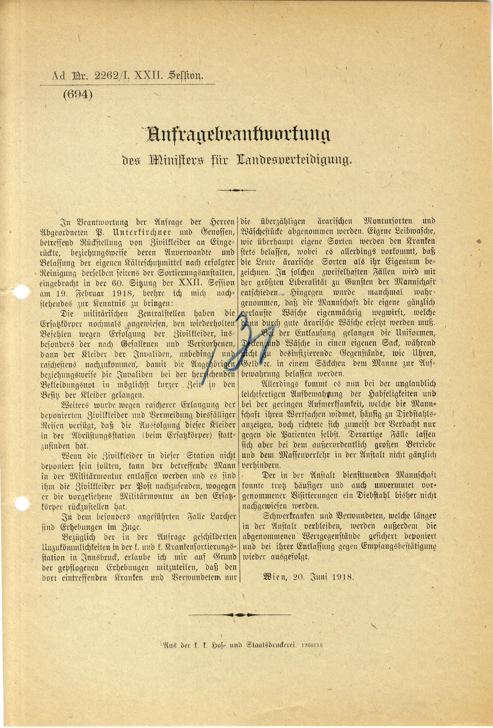Kriegsinvalide : Entschädigungen und Unterhaltsbeiträge ; [Sammlung von Zeitungsartikeln]