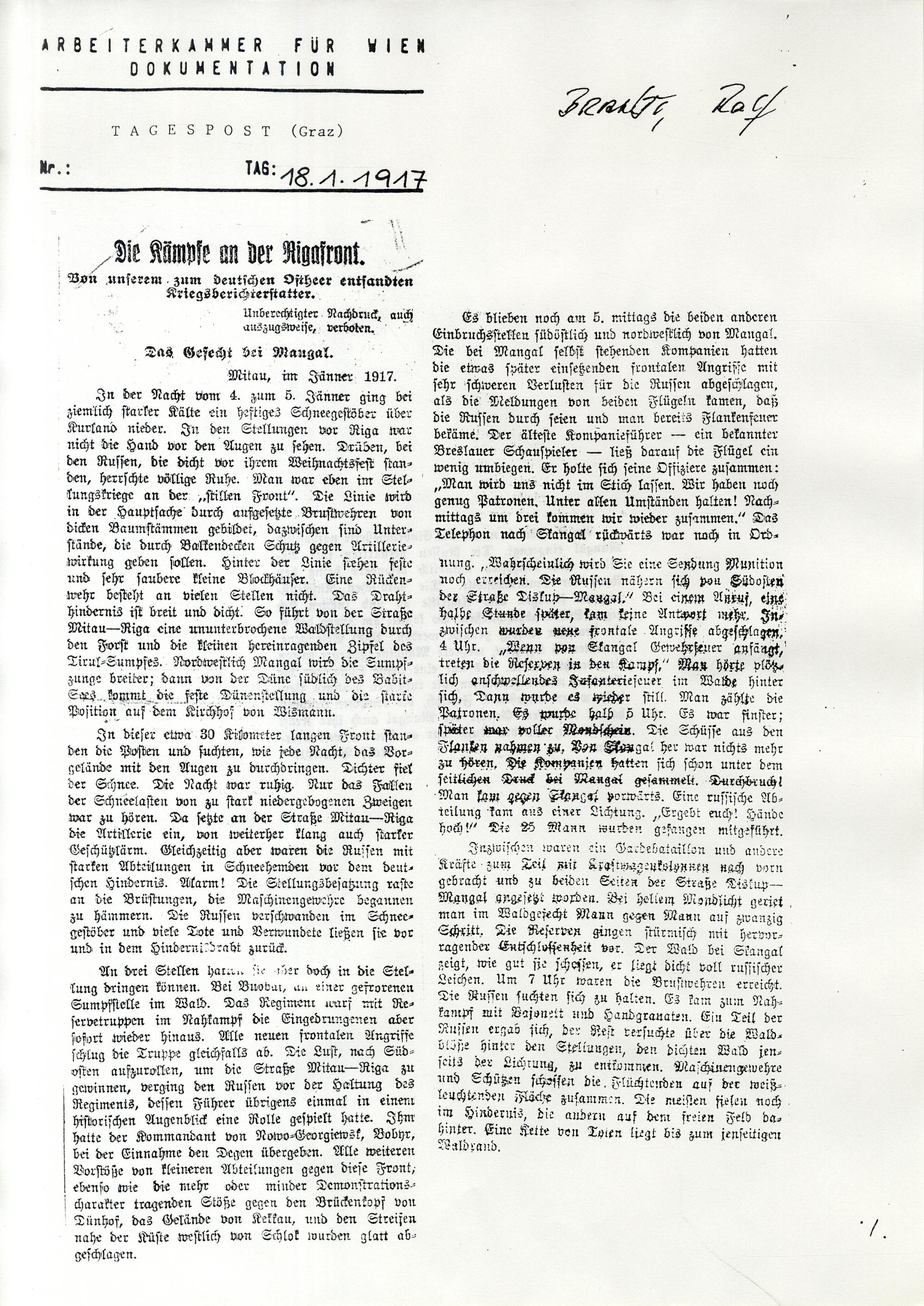 1917 (1917) Erster Weltkrieg : [Sammlung von Zeitungsartikeln]