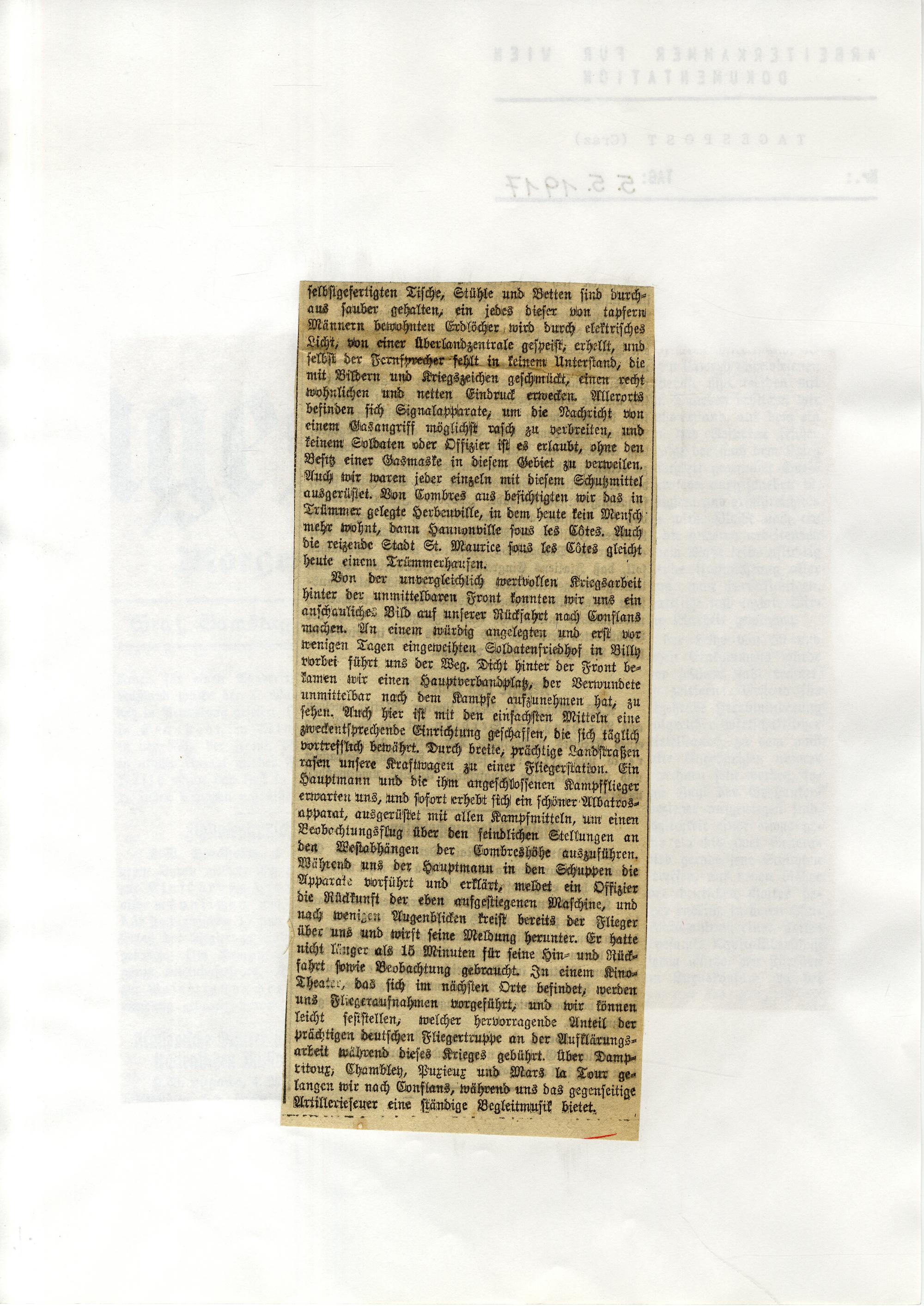 1917 (1917) Erster Weltkrieg : [Sammlung von Zeitungsartikeln]