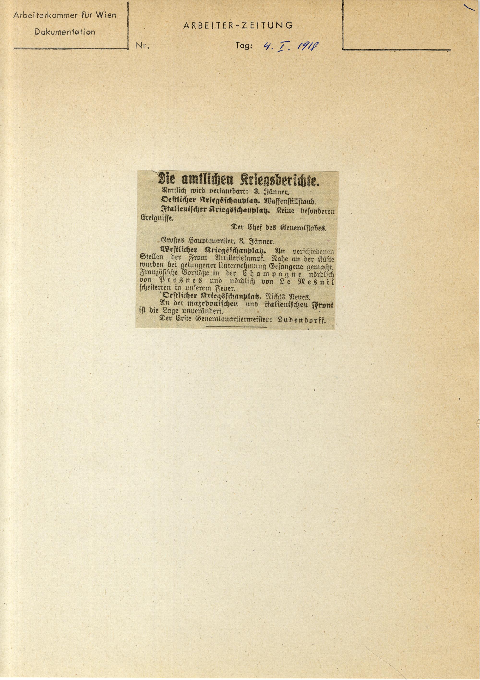 1918 (1918) Erster Weltkrieg : [Sammlung von Zeitungsartikeln]