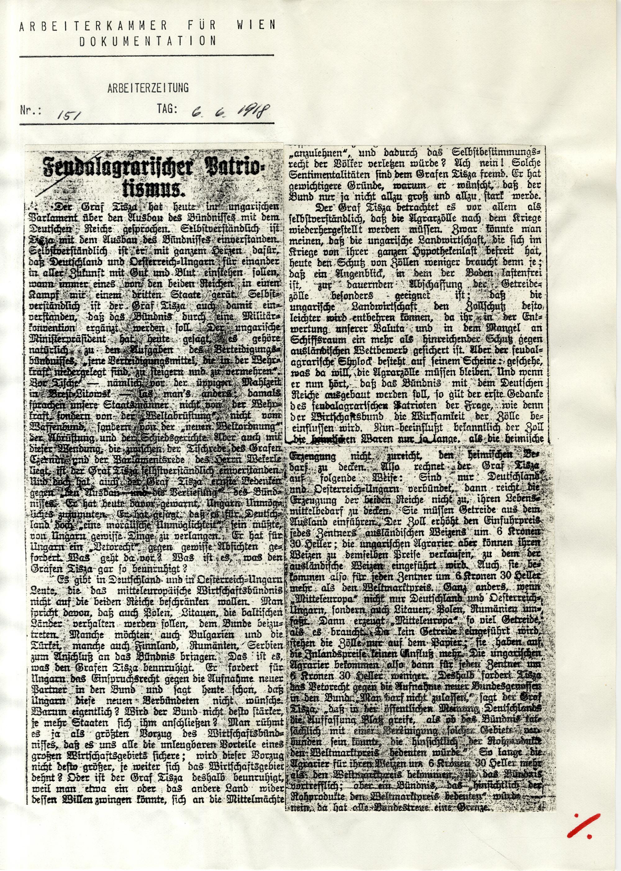 1918 (1918) Erster Weltkrieg : [Sammlung von Zeitungsartikeln]