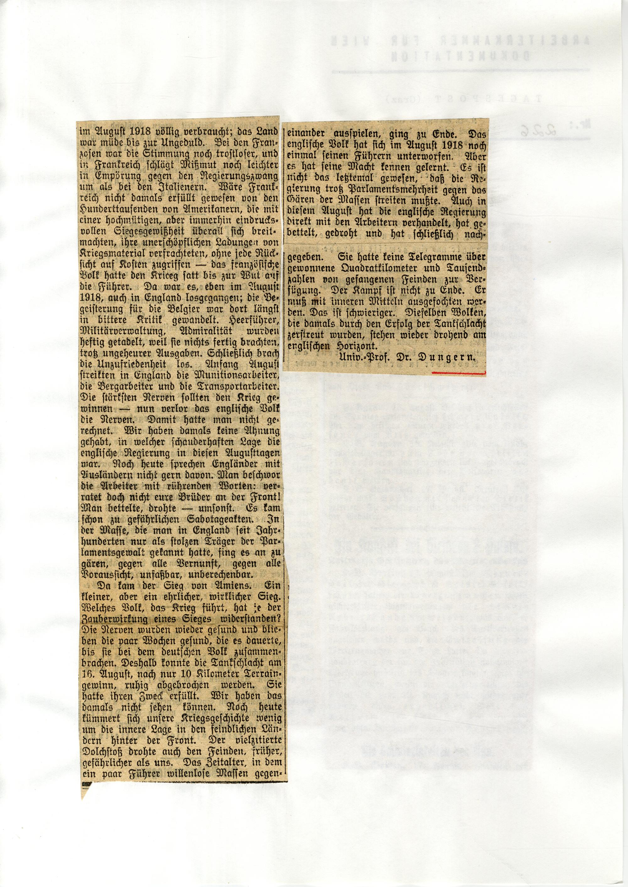 1925: Erster Weltkrieg : [Sammlung von Zeitungsartikeln]