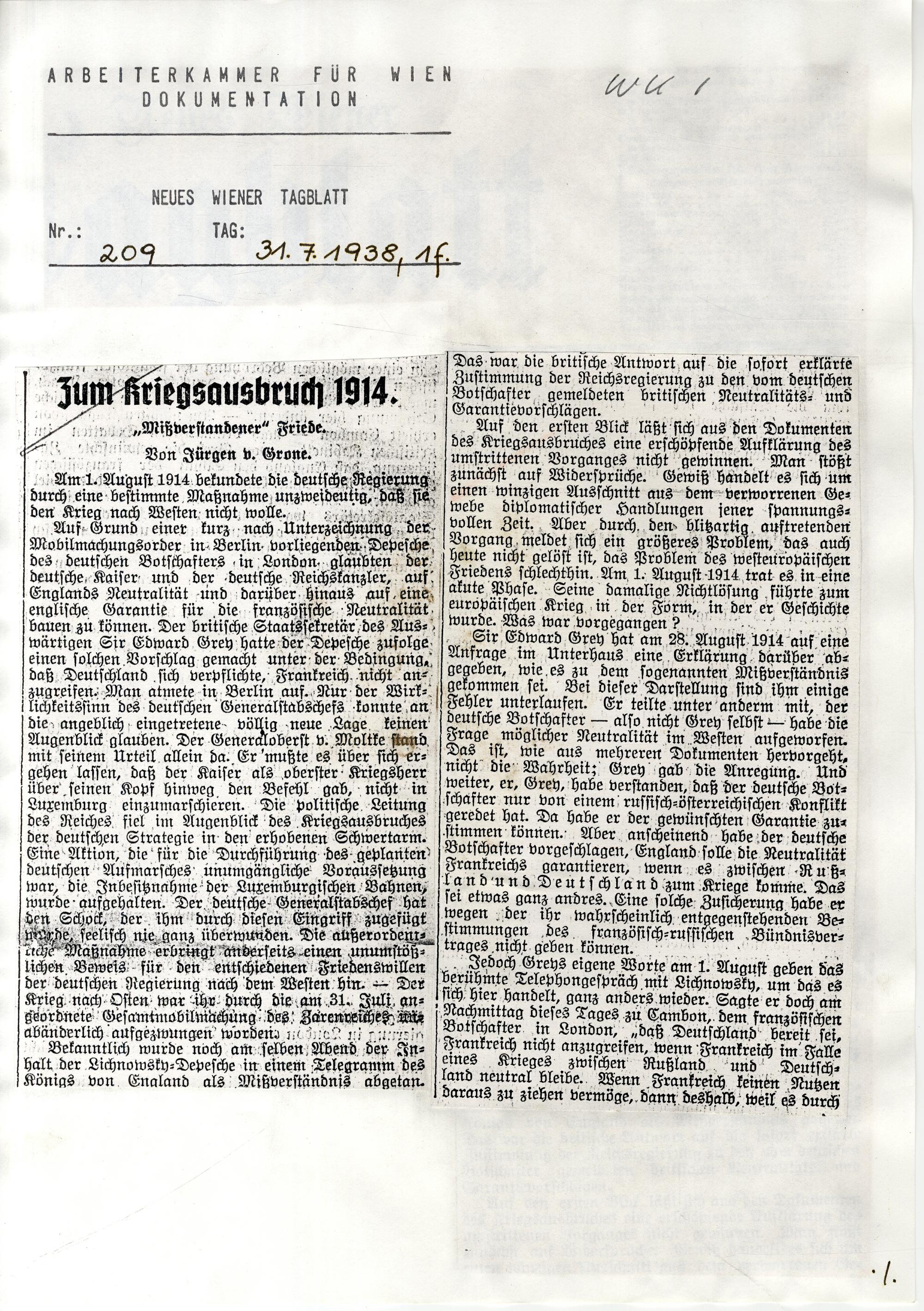 1937: Erster Weltkrieg : [Sammlung von Zeitungsartikeln]