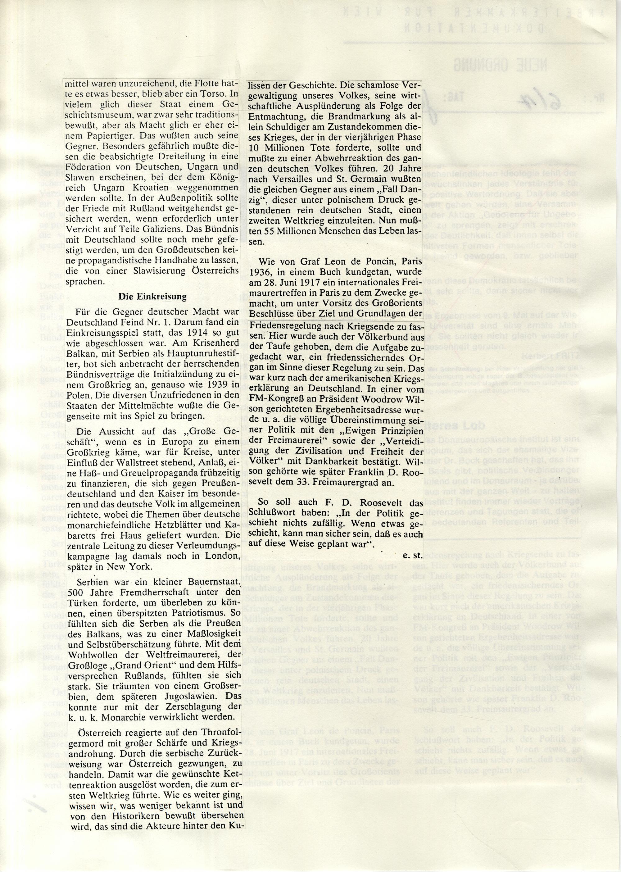 1994: Erster Weltkrieg : [Sammlung von Zeitungsartikeln]