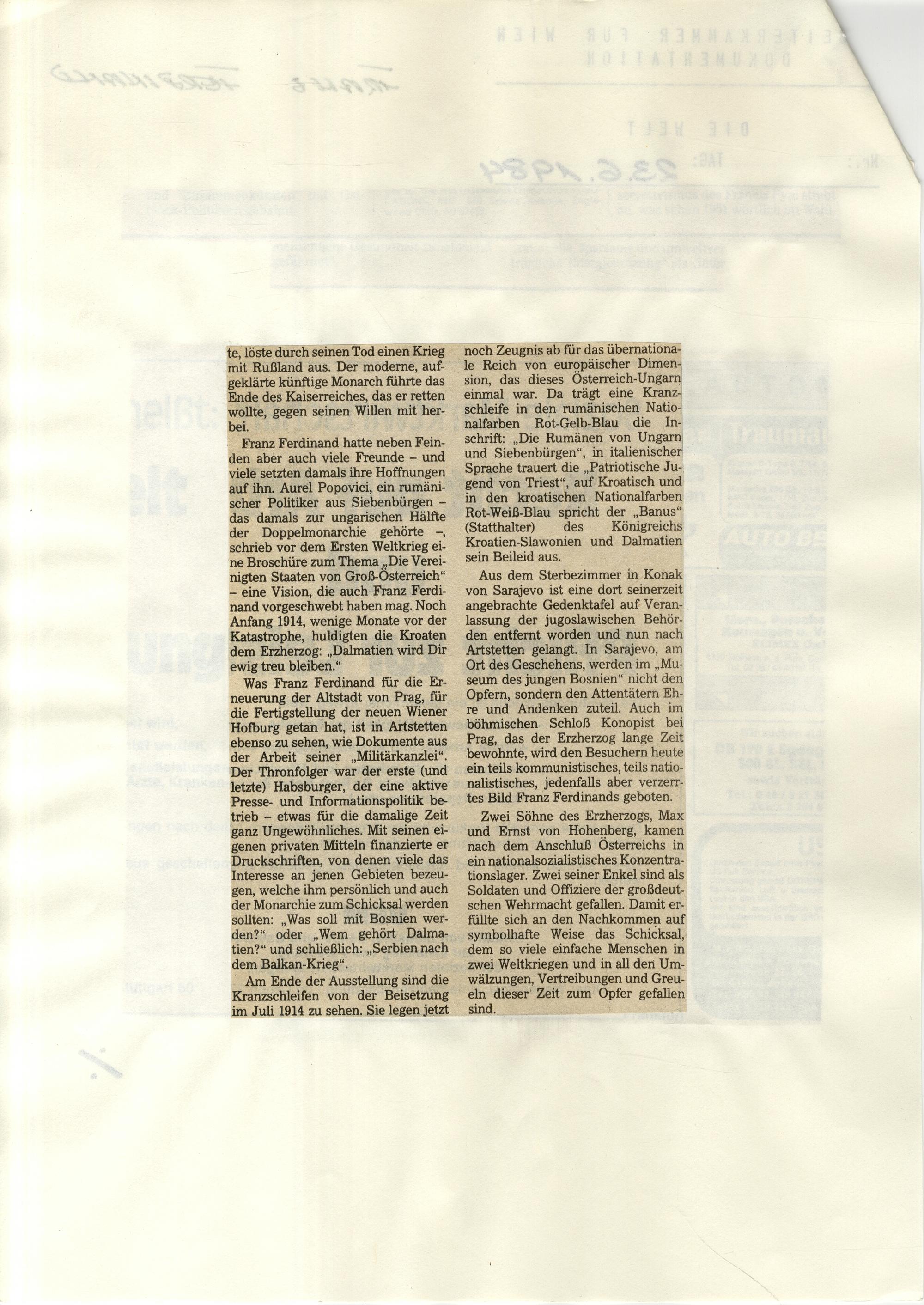 1994: Erster Weltkrieg : [Sammlung von Zeitungsartikeln]