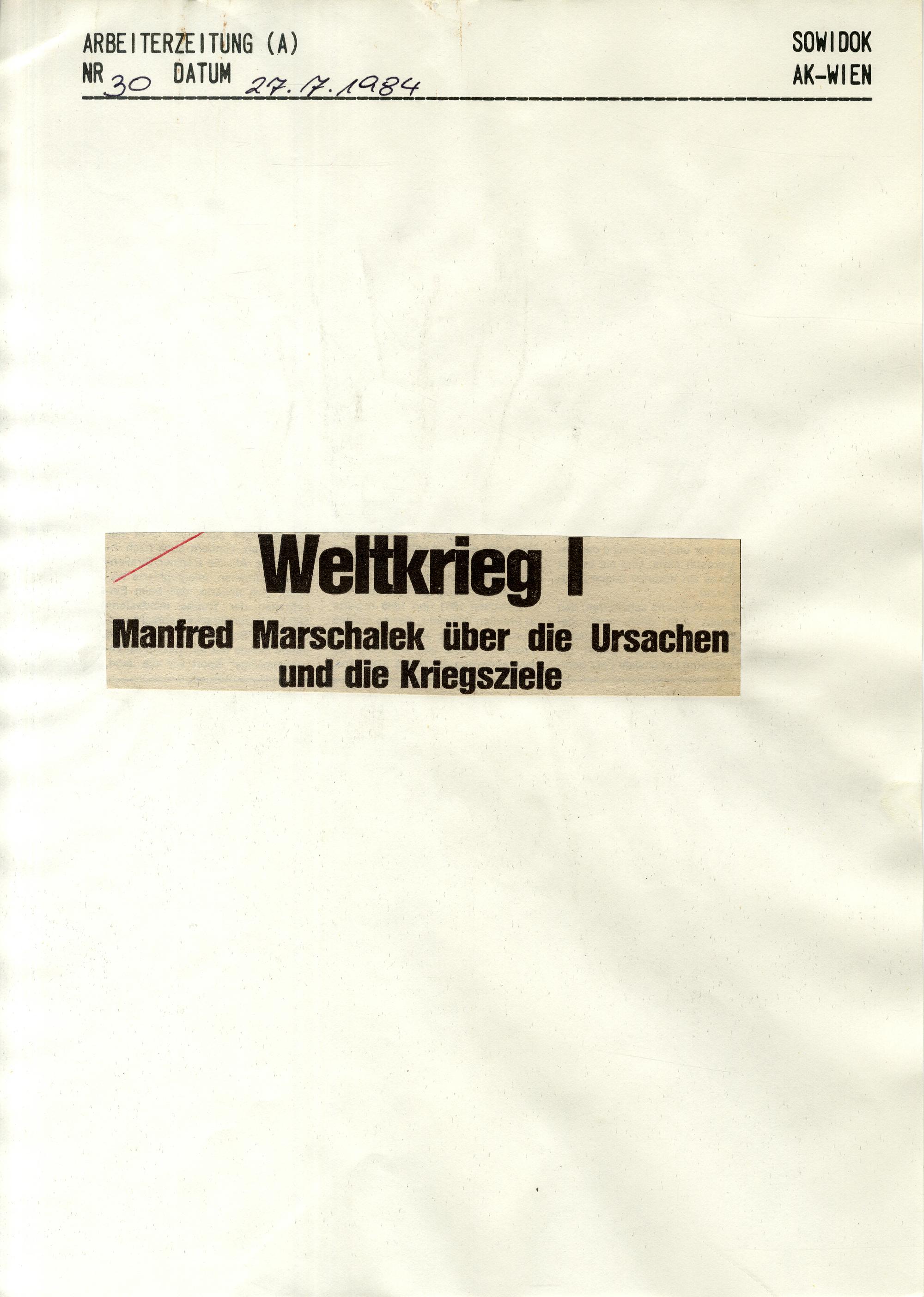 1994: Erster Weltkrieg : [Sammlung von Zeitungsartikeln]