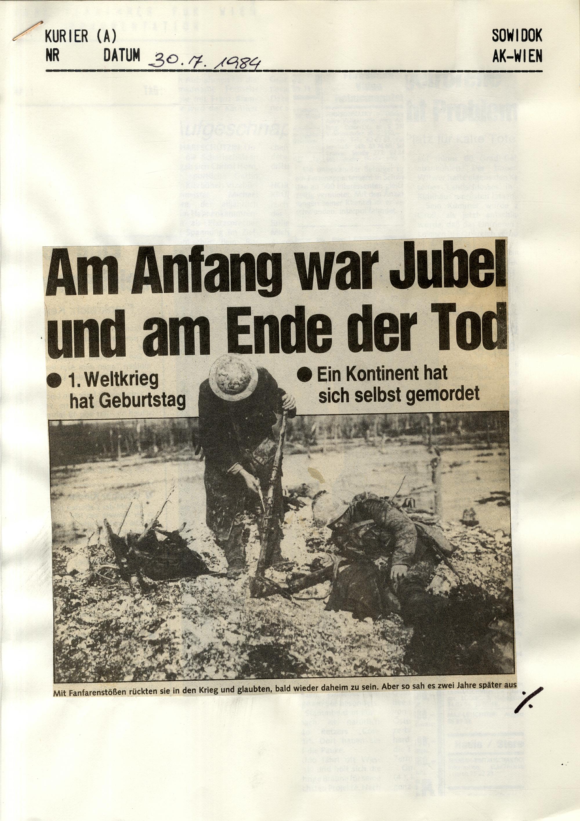 1994: Erster Weltkrieg : [Sammlung von Zeitungsartikeln]