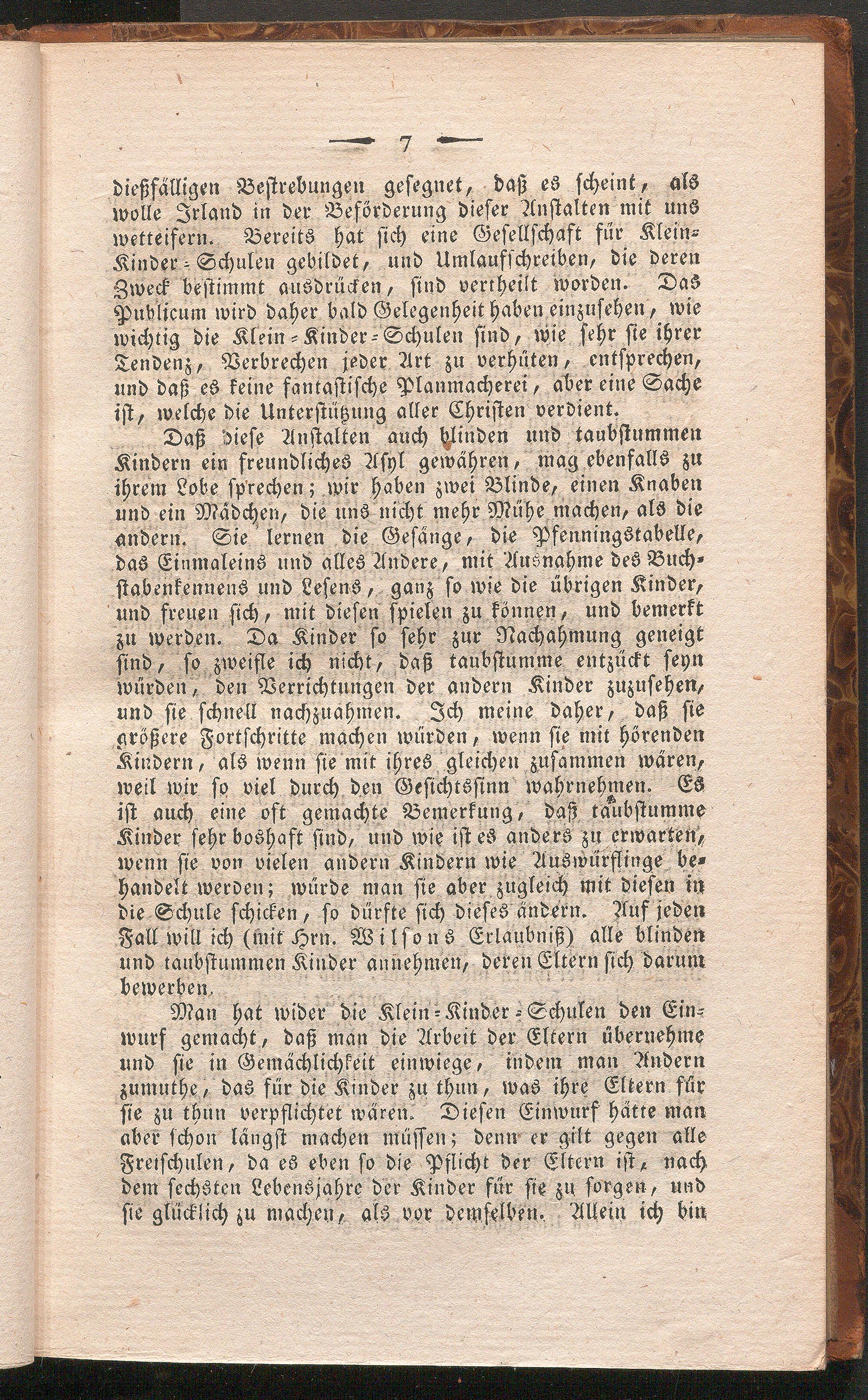 Ueber die frühzeitige Erziehung der Kinder und die englischen Klein-Kinder-Schulen : oder Bemerkungen über die Wichtigkeit, die kleinen Kinder der Armen im Alter von anderthalb bis sieben Jahren zu erziehen ; nebst einer Darstellung der Spitalfielder Klein-Kinder-Schule und des daselbst eingeführten Erziehungssystems / von S. Wilderspin. Aus dem Engl. nach der 3. Aufl., mit Benützung der neuesten Schriften von W. Wilson, Brown, Mayo u.a., und mit Anm. u. Zusätzen vers. von Joseph Wertheimer