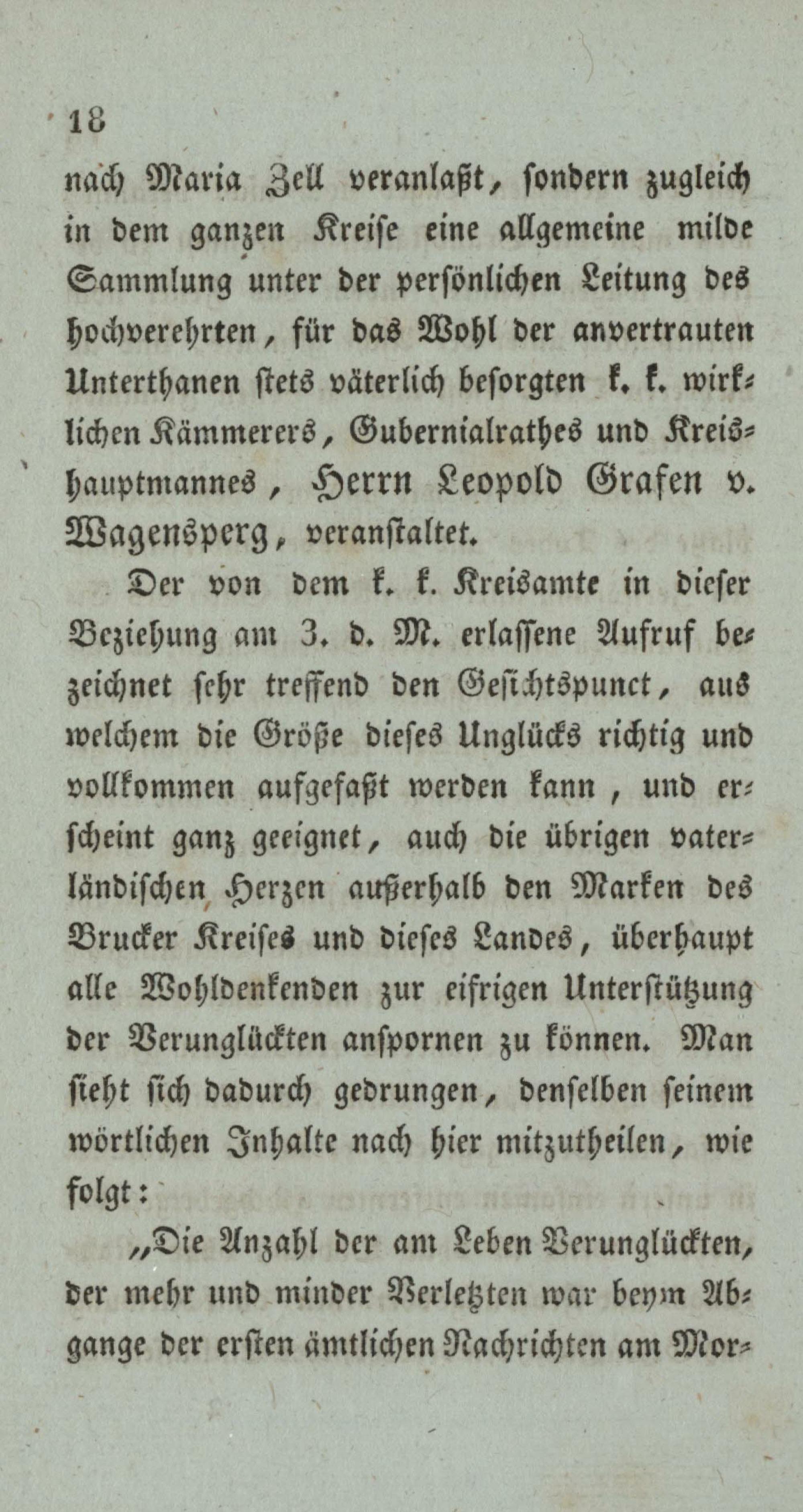 Beschreibung des verhängnißvollen Brandes von Maria Zell in der Allerheiligen-Nacht des Jahres 1827 : Aus den besten Quellen geschöpft / [I. F. L.] = I[gnaz] F[reiherr von] L[azarini]