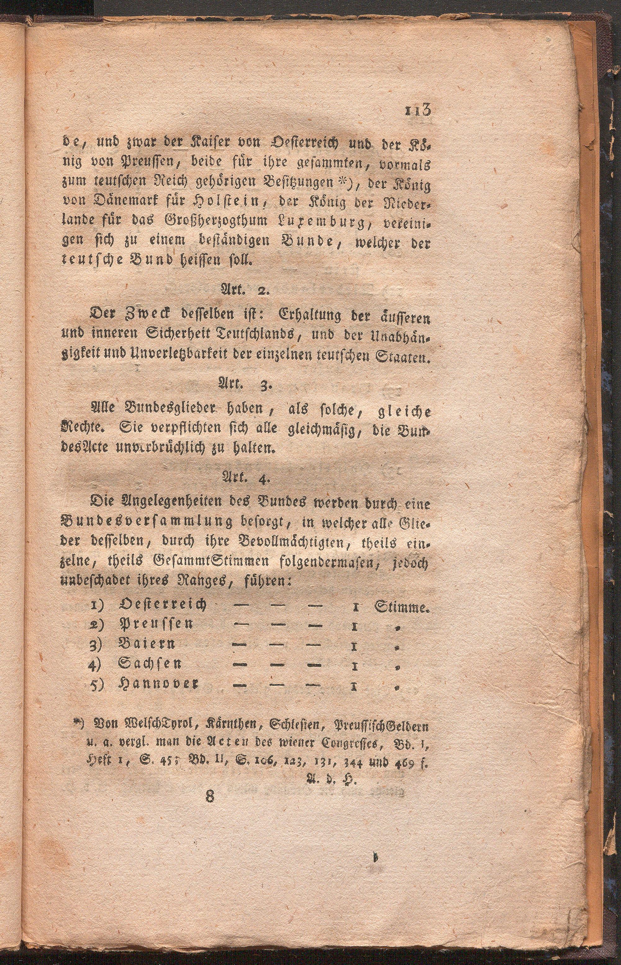 Schluß Acte des Wiener Congresses vom 9. Jun. 1815 und Bundes Acte oder Grundvertrag des teutschen Bundes, vom 8. Jun. 1815 : beide in der Ursprache, kritisch berichtigt, mit Vorbericht, Uebersicht des Inahltes, und Anzeige verschiedener Lesarten / vollständig herausgegeben von Johann Ludwig Klüber