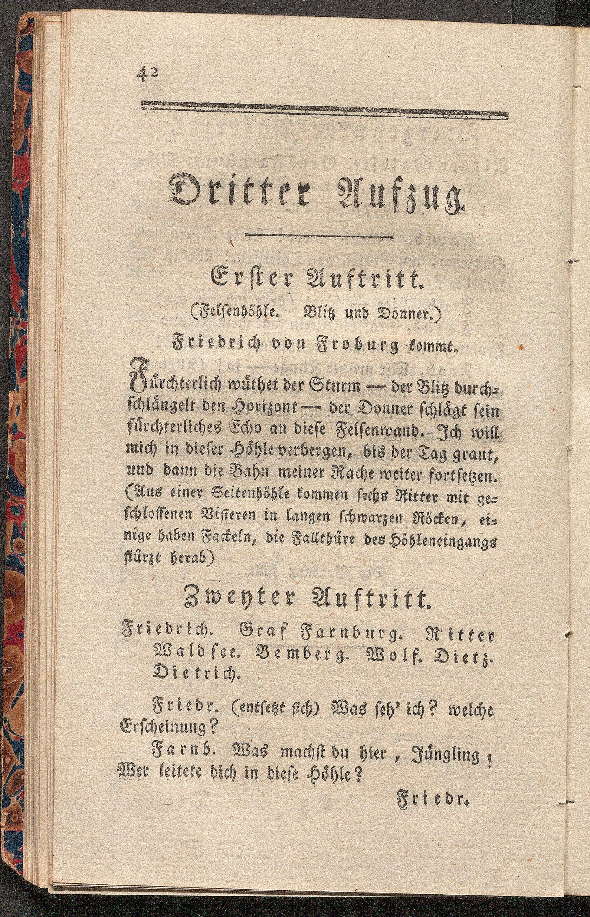 1 (1799) Die Löwenritter : Ein Schauspiel mit Gesang in vier Aufzügen / nach der Geschichte des Herrn Spieß für die Marinellische Schaubühne von Karl Friedrich Hensler ; die Musik ist von Herrn Ferdinand Kauer