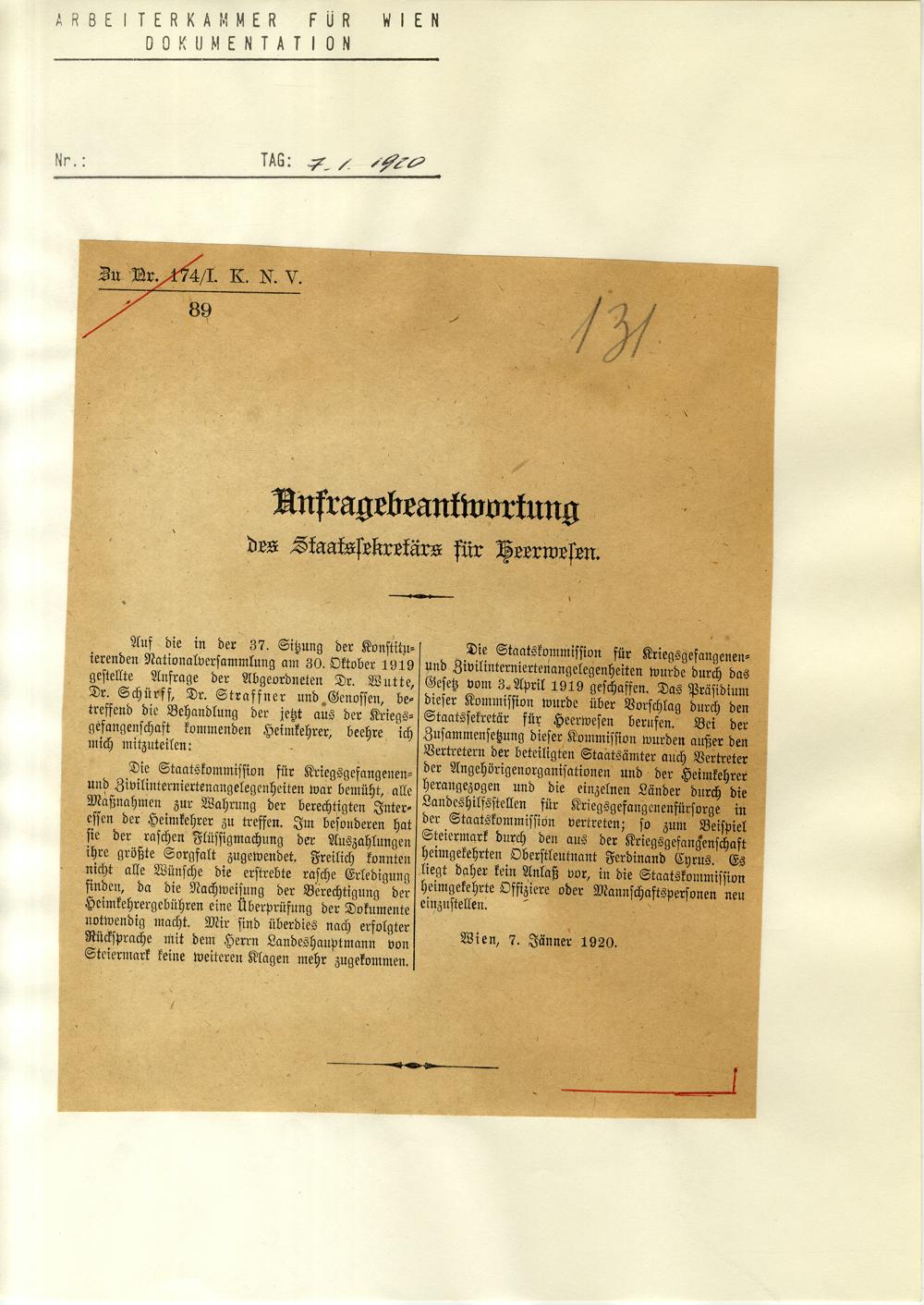 1920: Österreichische Kriegsgefangene im 1. Weltkrieg : [Sammlung von Zeitungsartikeln]
