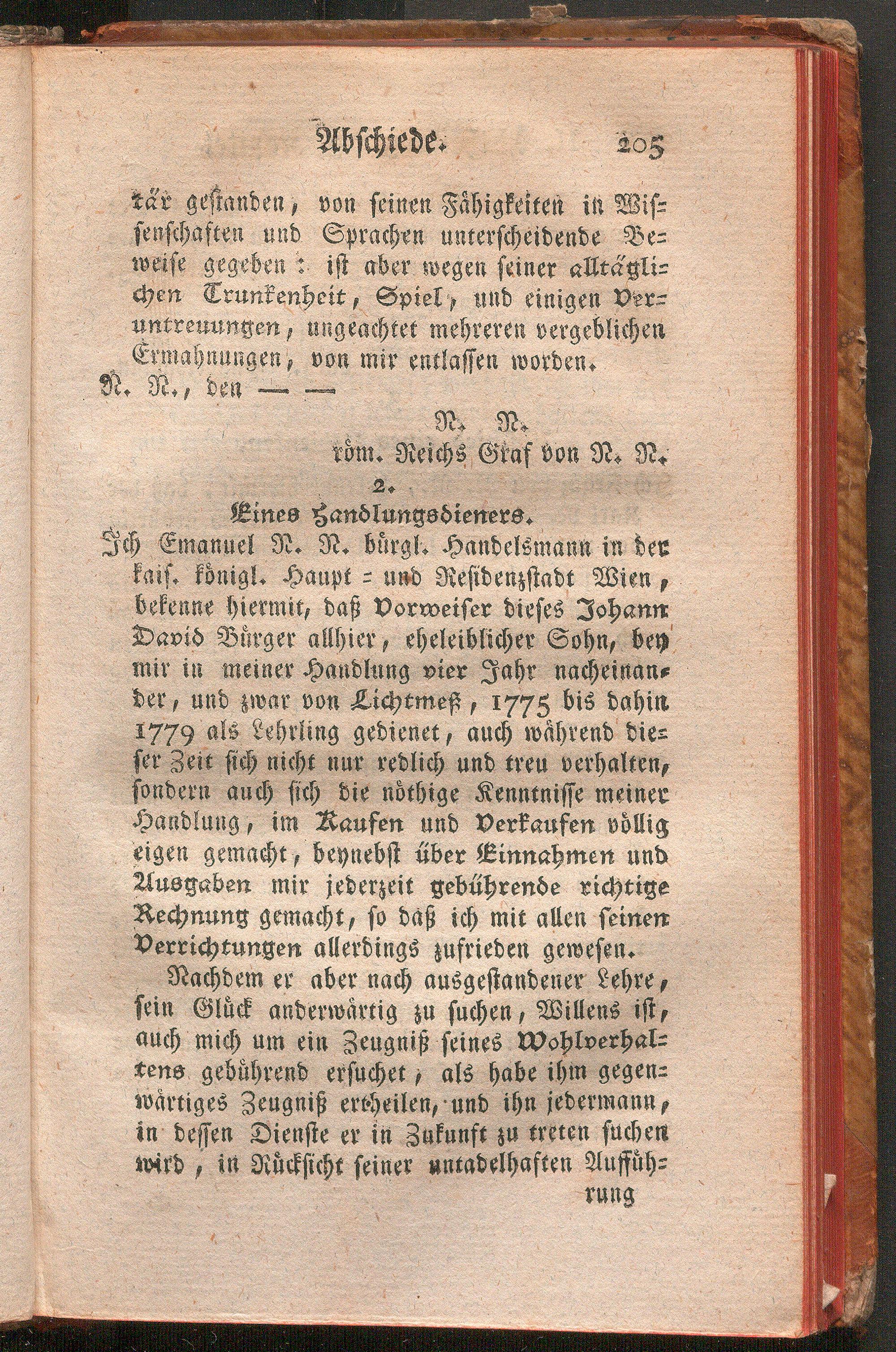 1 (1787) Enthält: 1. Allgemeine Grundsätze über die Schreibkunst, Sprachkenntnis und Rechtschreibung, nebst alphabetischen Verzeichnis orthographischer, kaufmännischer, juridischer fremder Wörter und Ausdrücke : 2. Ausführliche Regeln über die innere und äußere Einrichtung kleiner und größerer Geschäftsaufsätze, nebst Beyspielen allerley Gattung, so in gemeinen Leben vorkommen : 3. Kurze Anweisung über den Gang der Geschäfte in der k.k. Haupt- und Residenzstadt Wien und allen k.k. Erbländern, nebst einem alphabetischen Auszug über das Stempelpatent / von Samuel Riedl
