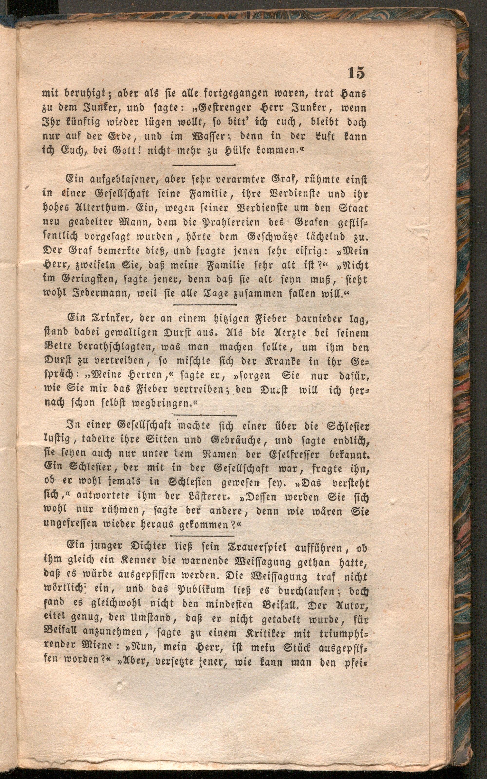 Allerneueste Anekdoten-Essenz : oder neueste Sammlung würzhafter Antworten, origineller Züge, scherzhafter Geschichten, komischer Auftritte, genialer Repliken, geistreicher Impromtus, deliciöser Witze und Einfälle / von Hilarius Jocosus