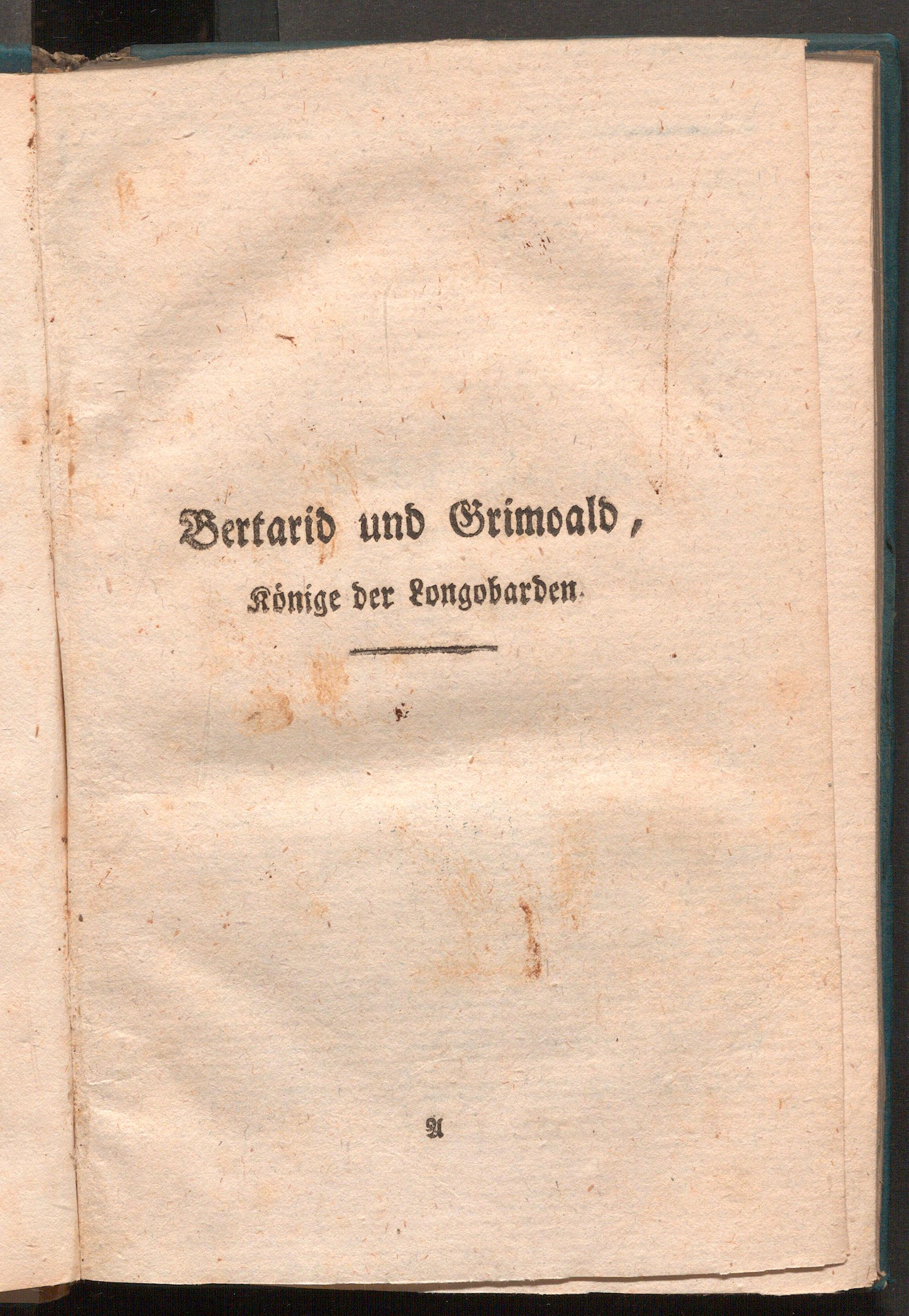 Bertarid und Grimoald, Könige der Longobarden : Ein historisch-romantisches Gemälde aus dem Mittelalter