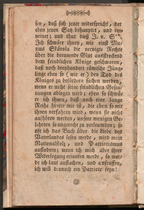 Ich will ein Patriote seyn! : an den Widerleger [Johann Adam von Haslinger:"Ich will kein Patriot seyn"] einer Schrift:"Über die Liebe des Vaterlandes" / von Josef von Sonnenfels