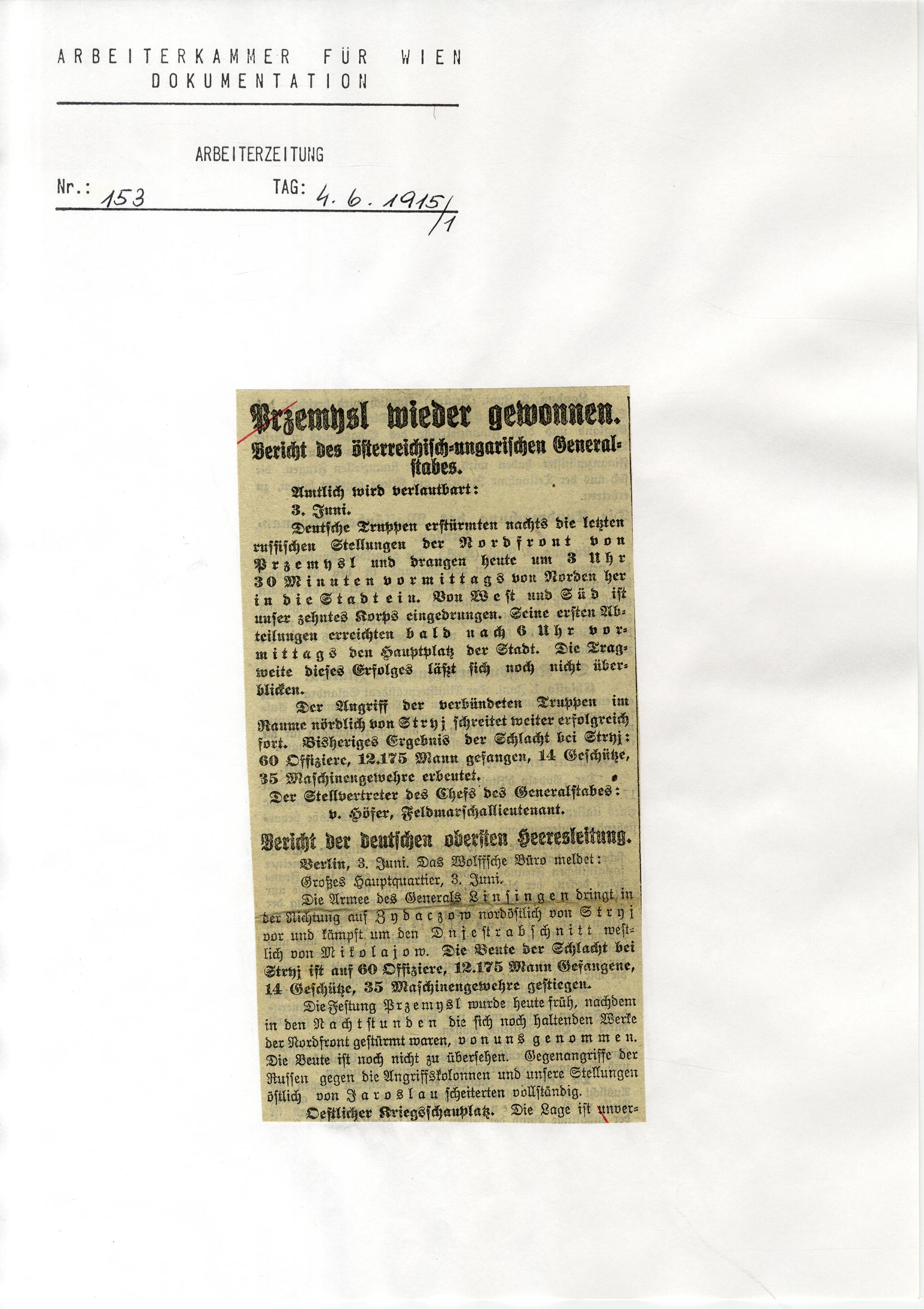 1915,05 (1915) Erster Weltkrieg : [Sammlung von Zeitungsartikeln]