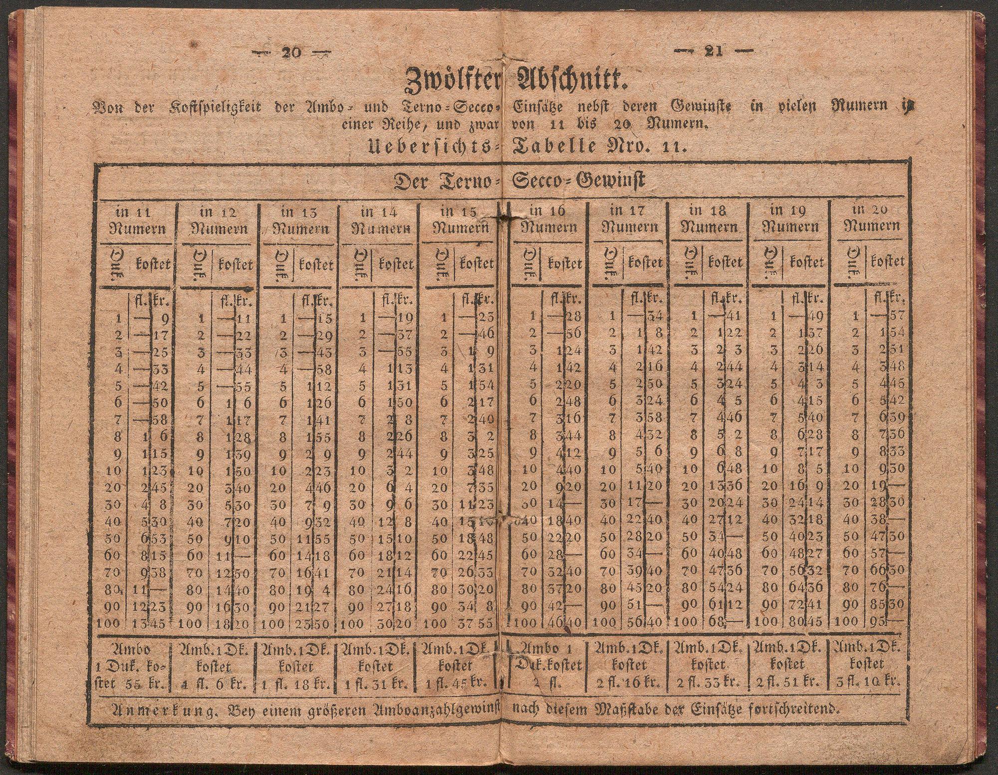 Neuest- und wohlfeilestes Lottospielerklärungs- und Ziehungsnumernbüchl : oder Lottoeinsatz- und Gewinstes-Tariff von 1 bis 20 Numern : zum Behufe sowohl für gegenwärtige als angehende Lottospielliebhaber / verfaßt und auf eigene Kosten herausgegeben von J.S. Rabenhuber