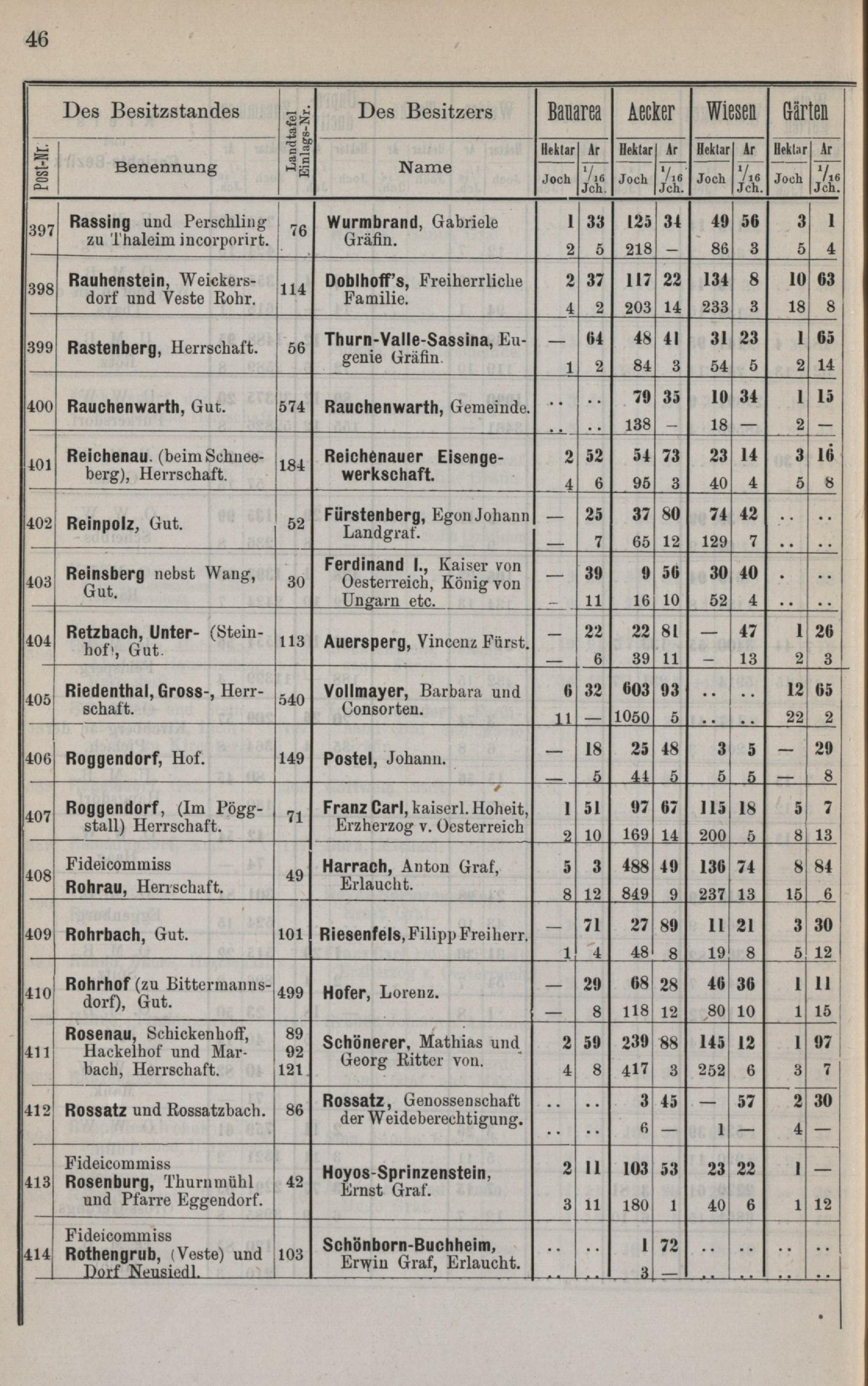 Der niederösterreichische Gross-Grundbesitz : alphabetisch geordnetes Nachschlage-Buch über den Eigenthums- und Besitzstand der landtäflichen Güter nach dem alten und neuen Flächenmaasse / nach den neuesten Daten bearb. von Franz Günther