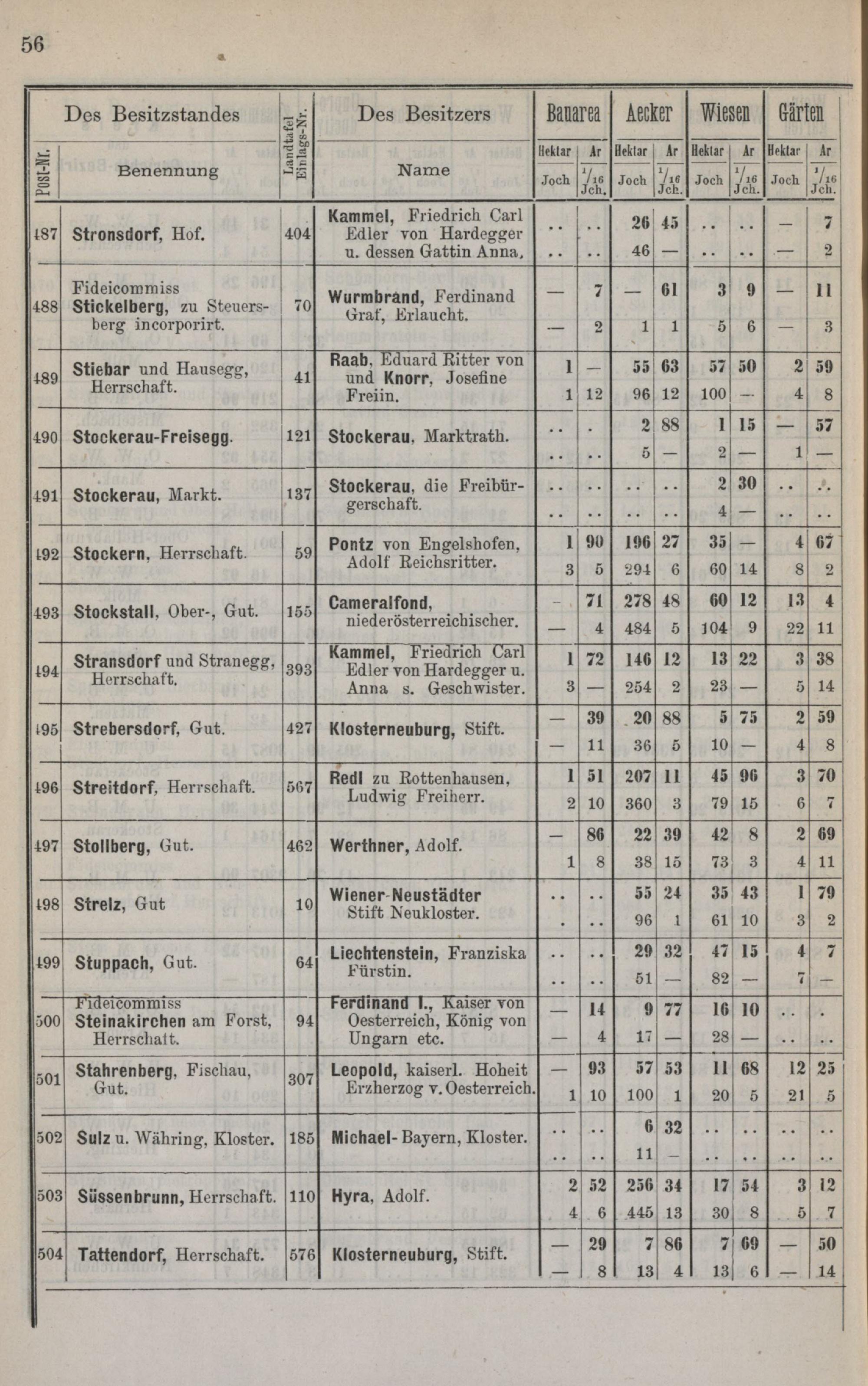 Der niederösterreichische Gross-Grundbesitz : alphabetisch geordnetes Nachschlage-Buch über den Eigenthums- und Besitzstand der landtäflichen Güter nach dem alten und neuen Flächenmaasse / nach den neuesten Daten bearb. von Franz Günther