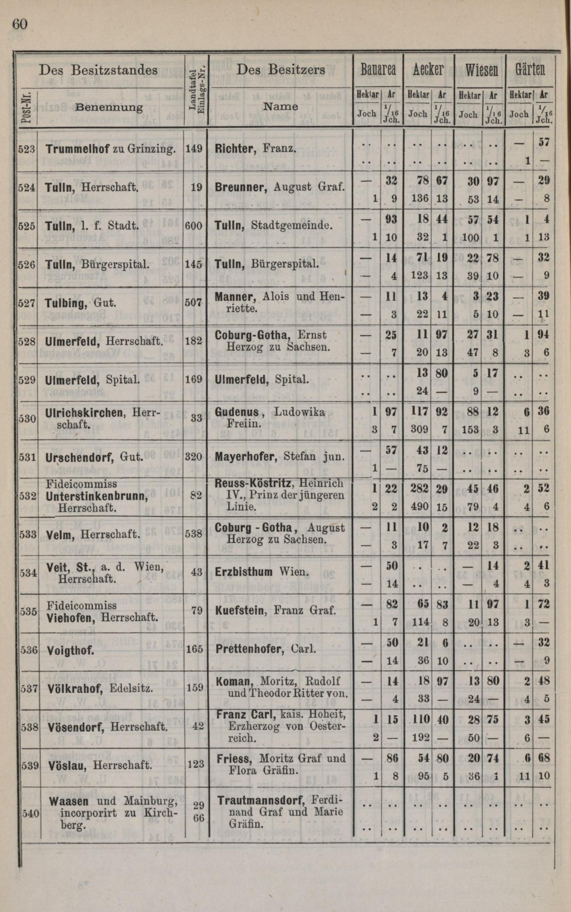 Der niederösterreichische Gross-Grundbesitz : alphabetisch geordnetes Nachschlage-Buch über den Eigenthums- und Besitzstand der landtäflichen Güter nach dem alten und neuen Flächenmaasse / nach den neuesten Daten bearb. von Franz Günther