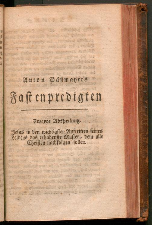Auszüge aus der Leidensgeschichte Jesu : in Fastenpredigten vorgetragen, und zum Gebrauche für Seelsorger sowohl, als auch zu einem lehrreichen Lesebuche für jeden Christen in der heiligen Fastenszeit / herausgegeben von Anton Päßmayer, Pfarrkuraten bey St. Leopold zu Wien in der Leopoldstadt