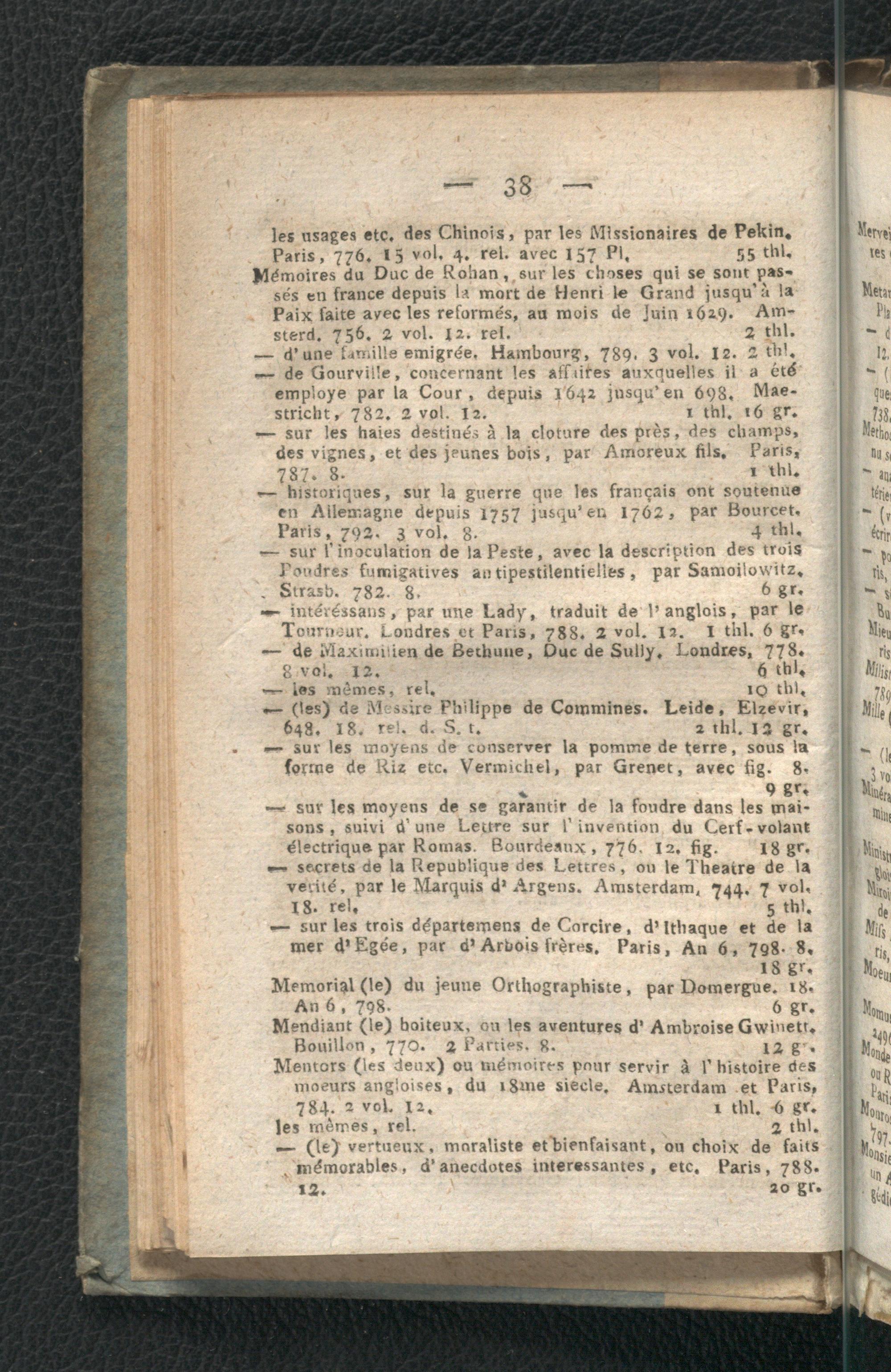 Catalogue des livres : qui se trouvent chez Paul Jaques Besson Libraire demeurant Neu-Neumarkt, maison de Mr. Mose, No. 18