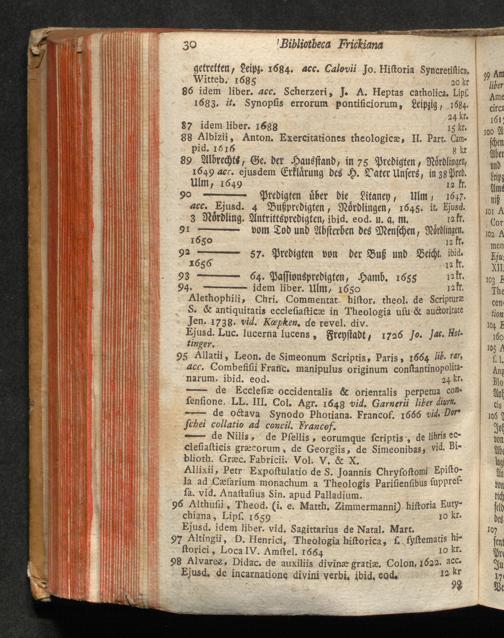 Catalogus Bibliothecae Frikianae : i. e. Apparatus Librorum quos a b. Parente cel. Joanne Frikio olim Eccles. Ulm. Antistite cet. hereditario iure acceptos insigniter & maximam partem adauxit Filius M. Albertus Frikius b. m. quondam in S. T. ibid. Ecclesiastes &c. ; quique nunc Augustæ Vindelicorum a Die XVI. Februarii MDCCLXXVIII. auctionis lege distrahentur