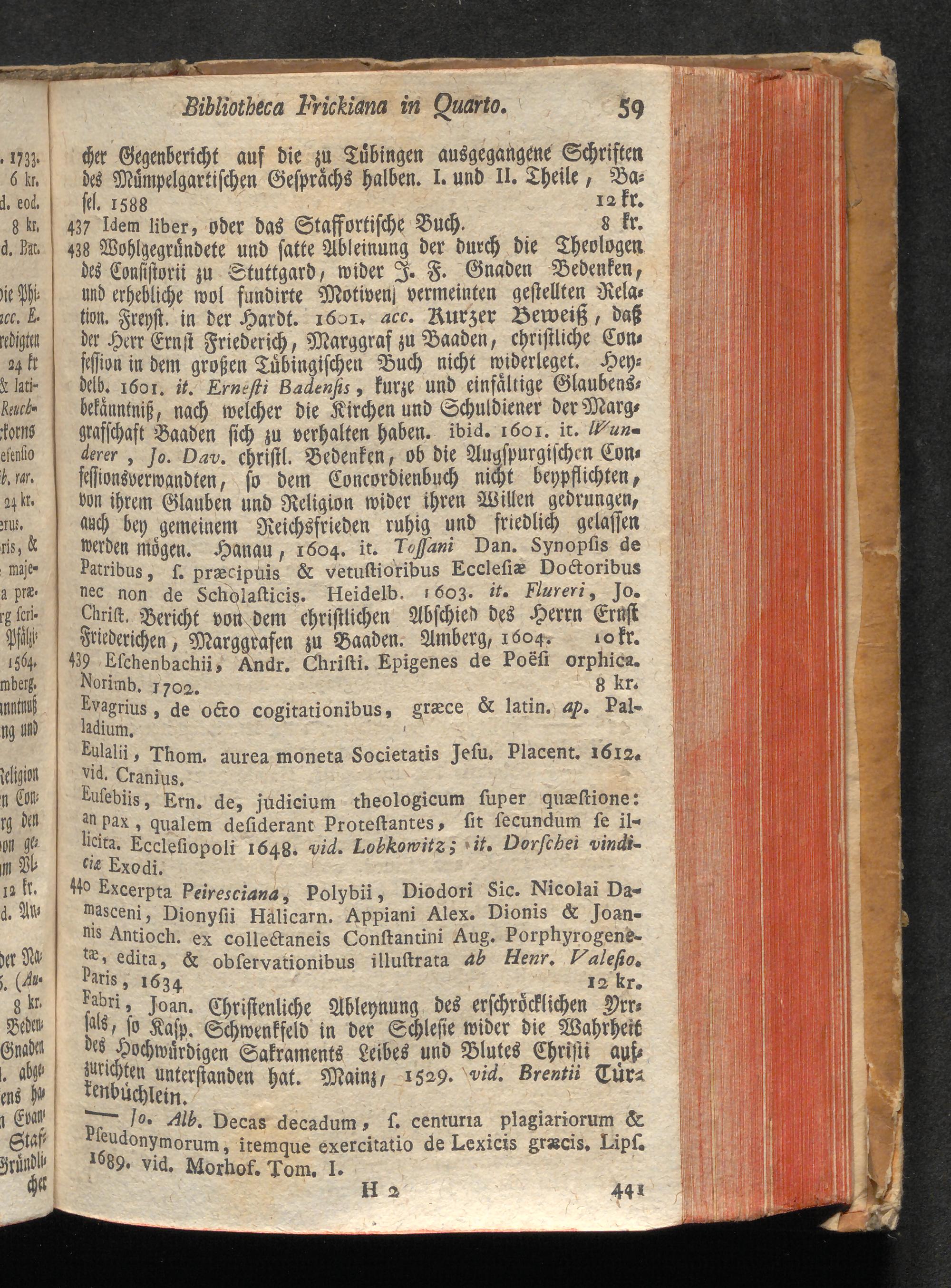 Catalogus Bibliothecae Frikianae : i. e. Apparatus Librorum quos a b. Parente cel. Joanne Frikio olim Eccles. Ulm. Antistite cet. hereditario iure acceptos insigniter & maximam partem adauxit Filius M. Albertus Frikius b. m. quondam in S. T. ibid. Ecclesiastes &c. ; quique nunc Augustæ Vindelicorum a Die XVI. Februarii MDCCLXXVIII. auctionis lege distrahentur