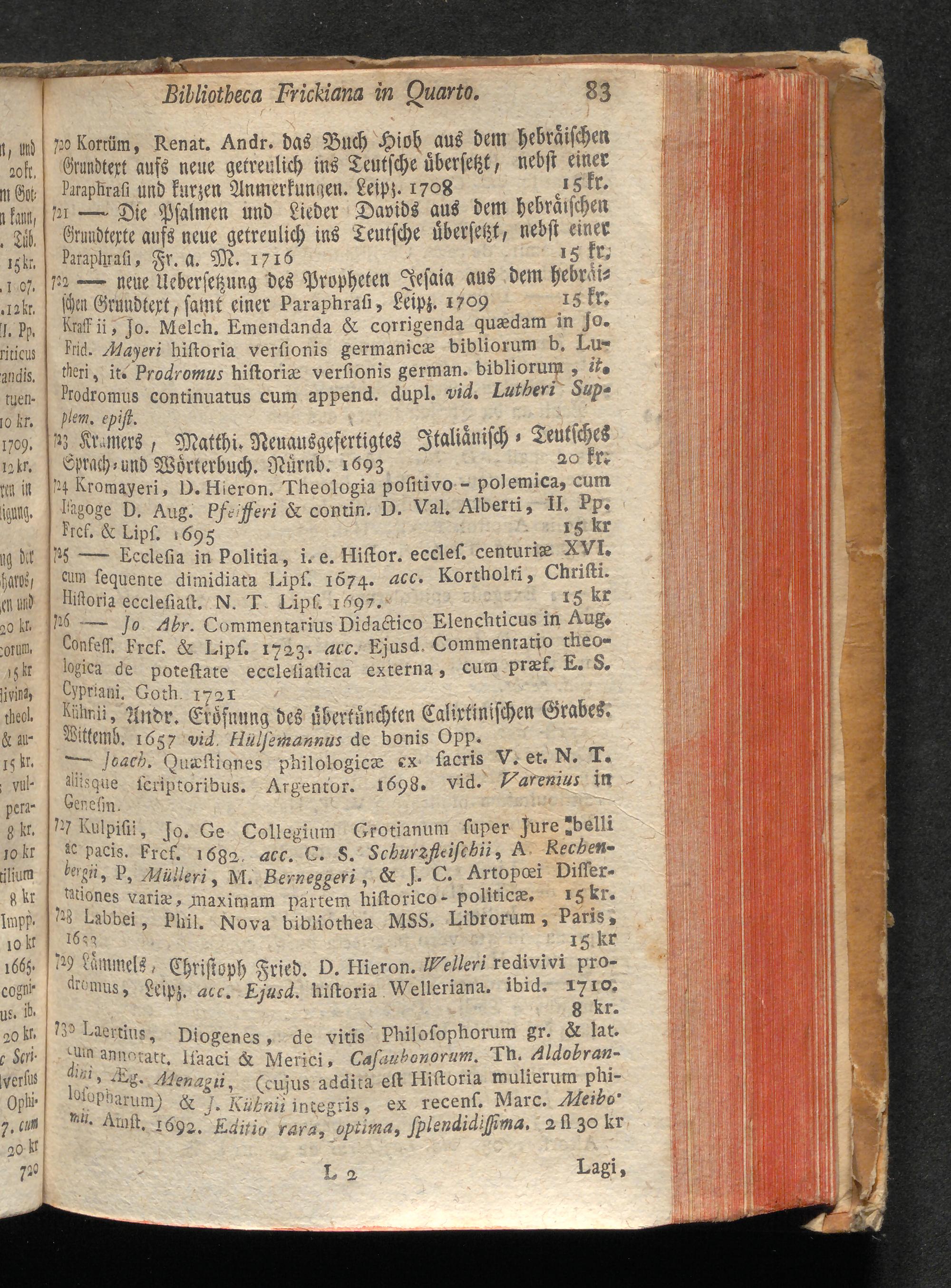 Catalogus Bibliothecae Frikianae : i. e. Apparatus Librorum quos a b. Parente cel. Joanne Frikio olim Eccles. Ulm. Antistite cet. hereditario iure acceptos insigniter & maximam partem adauxit Filius M. Albertus Frikius b. m. quondam in S. T. ibid. Ecclesiastes &c. ; quique nunc Augustæ Vindelicorum a Die XVI. Februarii MDCCLXXVIII. auctionis lege distrahentur