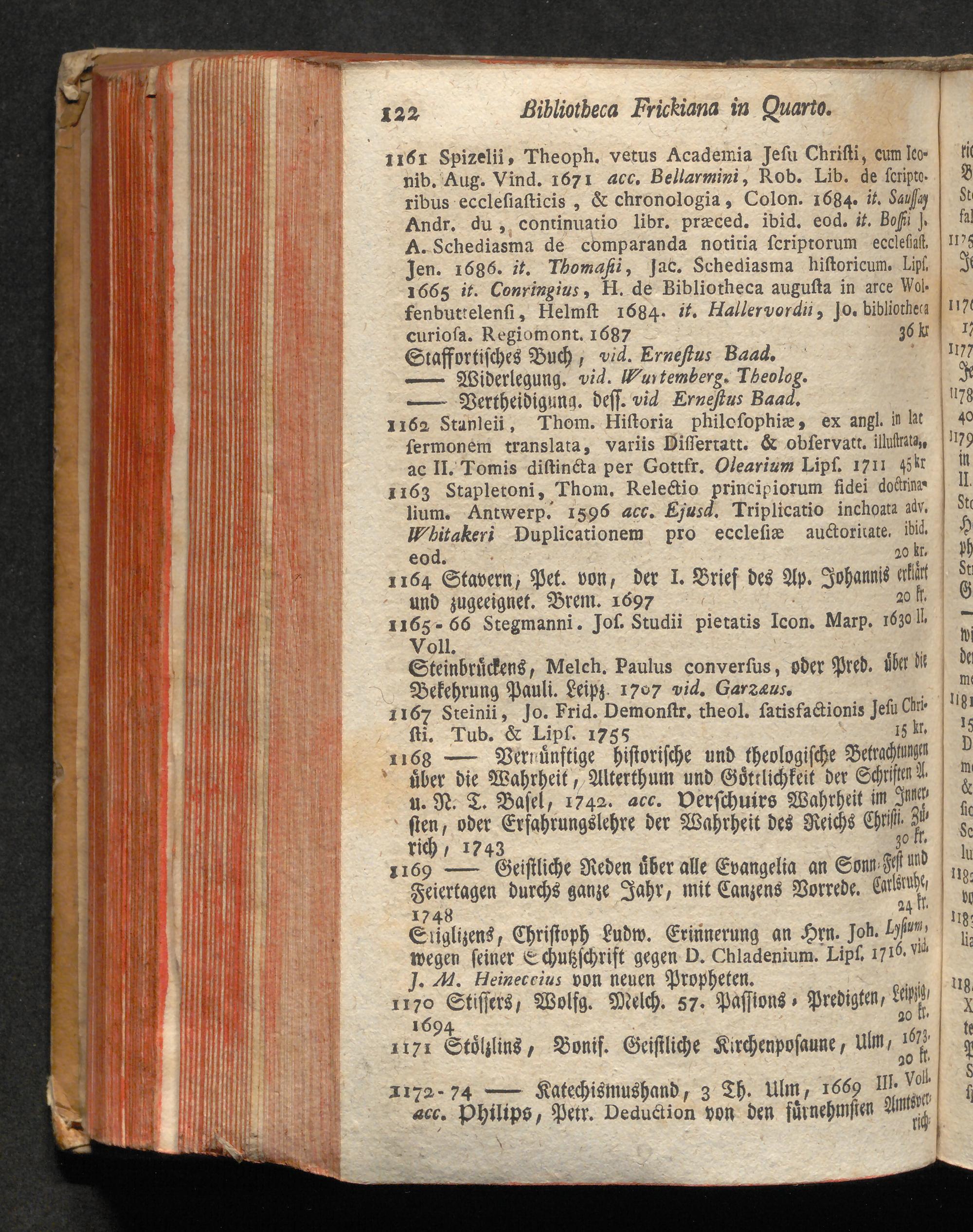 Catalogus Bibliothecae Frikianae : i. e. Apparatus Librorum quos a b. Parente cel. Joanne Frikio olim Eccles. Ulm. Antistite cet. hereditario iure acceptos insigniter & maximam partem adauxit Filius M. Albertus Frikius b. m. quondam in S. T. ibid. Ecclesiastes &c. ; quique nunc Augustæ Vindelicorum a Die XVI. Februarii MDCCLXXVIII. auctionis lege distrahentur