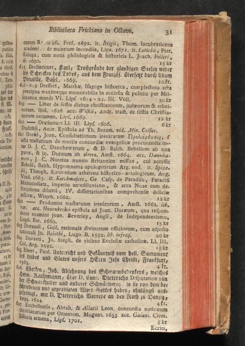 Catalogus Bibliothecae Frikianae : i. e. Apparatus Librorum quos a b. Parente cel. Joanne Frikio olim Eccles. Ulm. Antistite cet. hereditario iure acceptos insigniter & maximam partem adauxit Filius M. Albertus Frikius b. m. quondam in S. T. ibid. Ecclesiastes &c. ; quique nunc Augustæ Vindelicorum a Die XVI. Februarii MDCCLXXVIII. auctionis lege distrahentur