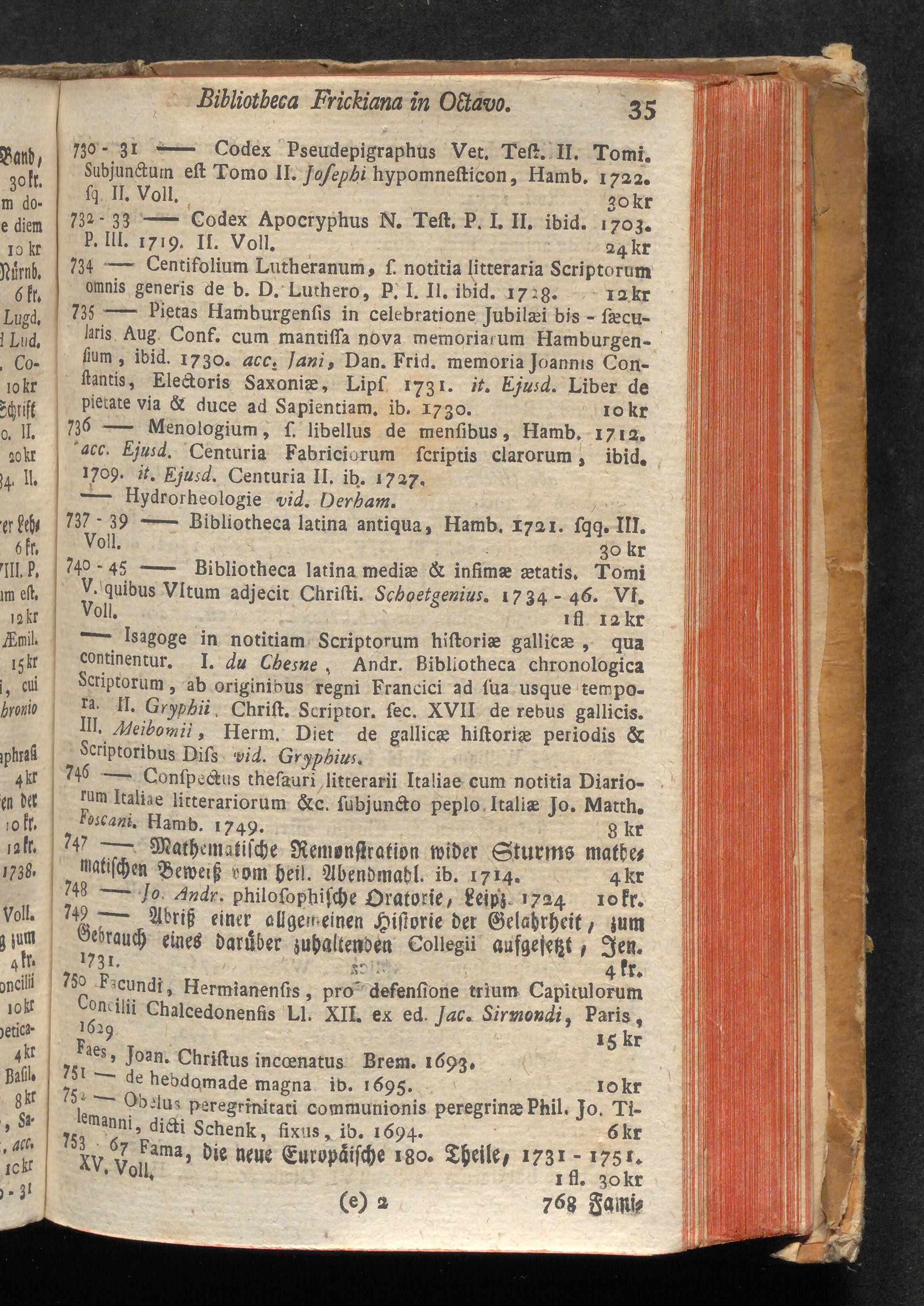 Catalogus Bibliothecae Frikianae : i. e. Apparatus Librorum quos a b. Parente cel. Joanne Frikio olim Eccles. Ulm. Antistite cet. hereditario iure acceptos insigniter & maximam partem adauxit Filius M. Albertus Frikius b. m. quondam in S. T. ibid. Ecclesiastes &c. ; quique nunc Augustæ Vindelicorum a Die XVI. Februarii MDCCLXXVIII. auctionis lege distrahentur
