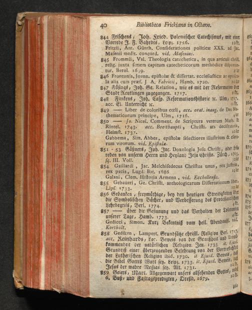 Catalogus Bibliothecae Frikianae : i. e. Apparatus Librorum quos a b. Parente cel. Joanne Frikio olim Eccles. Ulm. Antistite cet. hereditario iure acceptos insigniter & maximam partem adauxit Filius M. Albertus Frikius b. m. quondam in S. T. ibid. Ecclesiastes &c. ; quique nunc Augustæ Vindelicorum a Die XVI. Februarii MDCCLXXVIII. auctionis lege distrahentur