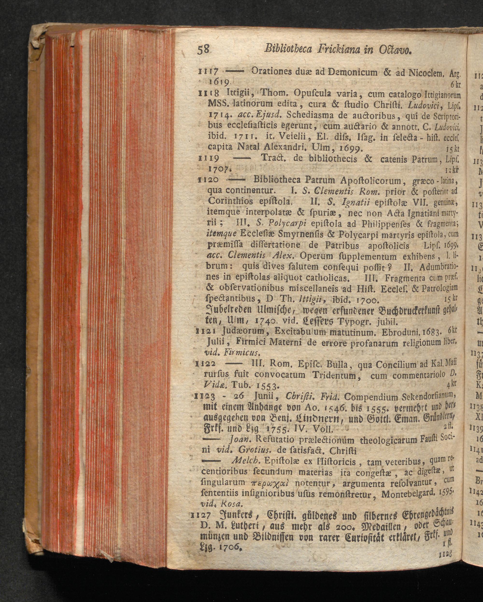 Catalogus Bibliothecae Frikianae : i. e. Apparatus Librorum quos a b. Parente cel. Joanne Frikio olim Eccles. Ulm. Antistite cet. hereditario iure acceptos insigniter & maximam partem adauxit Filius M. Albertus Frikius b. m. quondam in S. T. ibid. Ecclesiastes &c. ; quique nunc Augustæ Vindelicorum a Die XVI. Februarii MDCCLXXVIII. auctionis lege distrahentur