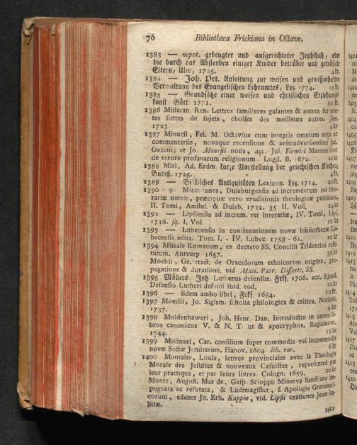 Catalogus Bibliothecae Frikianae : i. e. Apparatus Librorum quos a b. Parente cel. Joanne Frikio olim Eccles. Ulm. Antistite cet. hereditario iure acceptos insigniter & maximam partem adauxit Filius M. Albertus Frikius b. m. quondam in S. T. ibid. Ecclesiastes &c. ; quique nunc Augustæ Vindelicorum a Die XVI. Februarii MDCCLXXVIII. auctionis lege distrahentur