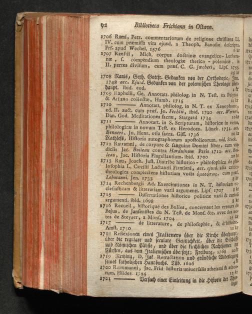Catalogus Bibliothecae Frikianae : i. e. Apparatus Librorum quos a b. Parente cel. Joanne Frikio olim Eccles. Ulm. Antistite cet. hereditario iure acceptos insigniter & maximam partem adauxit Filius M. Albertus Frikius b. m. quondam in S. T. ibid. Ecclesiastes &c. ; quique nunc Augustæ Vindelicorum a Die XVI. Februarii MDCCLXXVIII. auctionis lege distrahentur