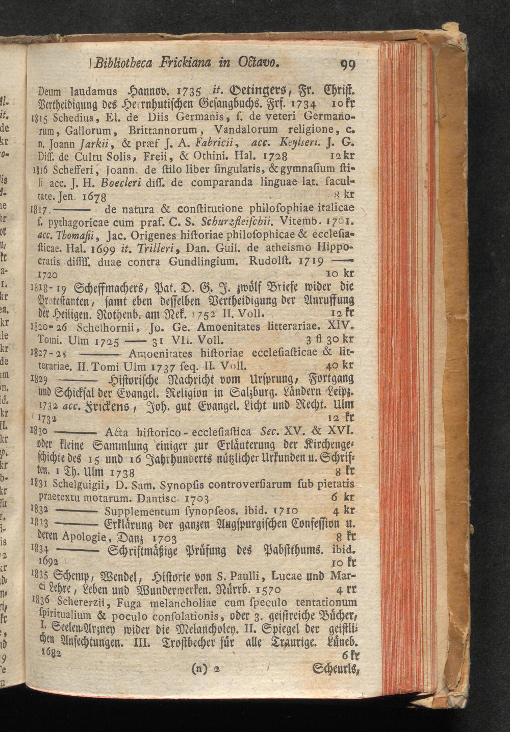 Catalogus Bibliothecae Frikianae : i. e. Apparatus Librorum quos a b. Parente cel. Joanne Frikio olim Eccles. Ulm. Antistite cet. hereditario iure acceptos insigniter & maximam partem adauxit Filius M. Albertus Frikius b. m. quondam in S. T. ibid. Ecclesiastes &c. ; quique nunc Augustæ Vindelicorum a Die XVI. Februarii MDCCLXXVIII. auctionis lege distrahentur