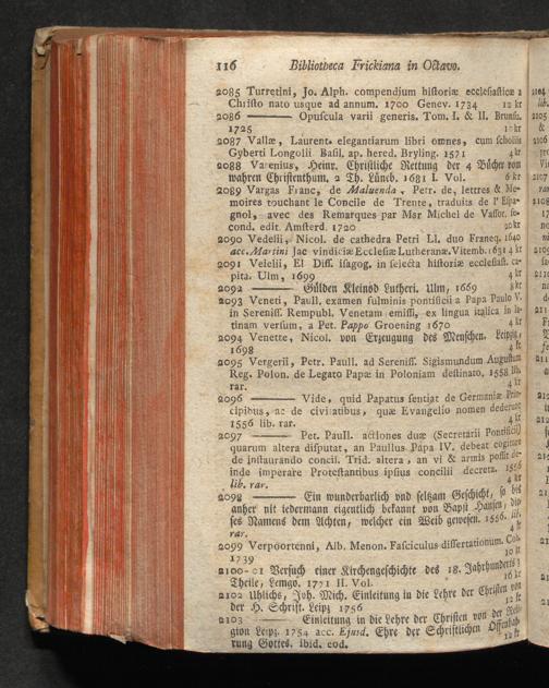 Catalogus Bibliothecae Frikianae : i. e. Apparatus Librorum quos a b. Parente cel. Joanne Frikio olim Eccles. Ulm. Antistite cet. hereditario iure acceptos insigniter & maximam partem adauxit Filius M. Albertus Frikius b. m. quondam in S. T. ibid. Ecclesiastes &c. ; quique nunc Augustæ Vindelicorum a Die XVI. Februarii MDCCLXXVIII. auctionis lege distrahentur