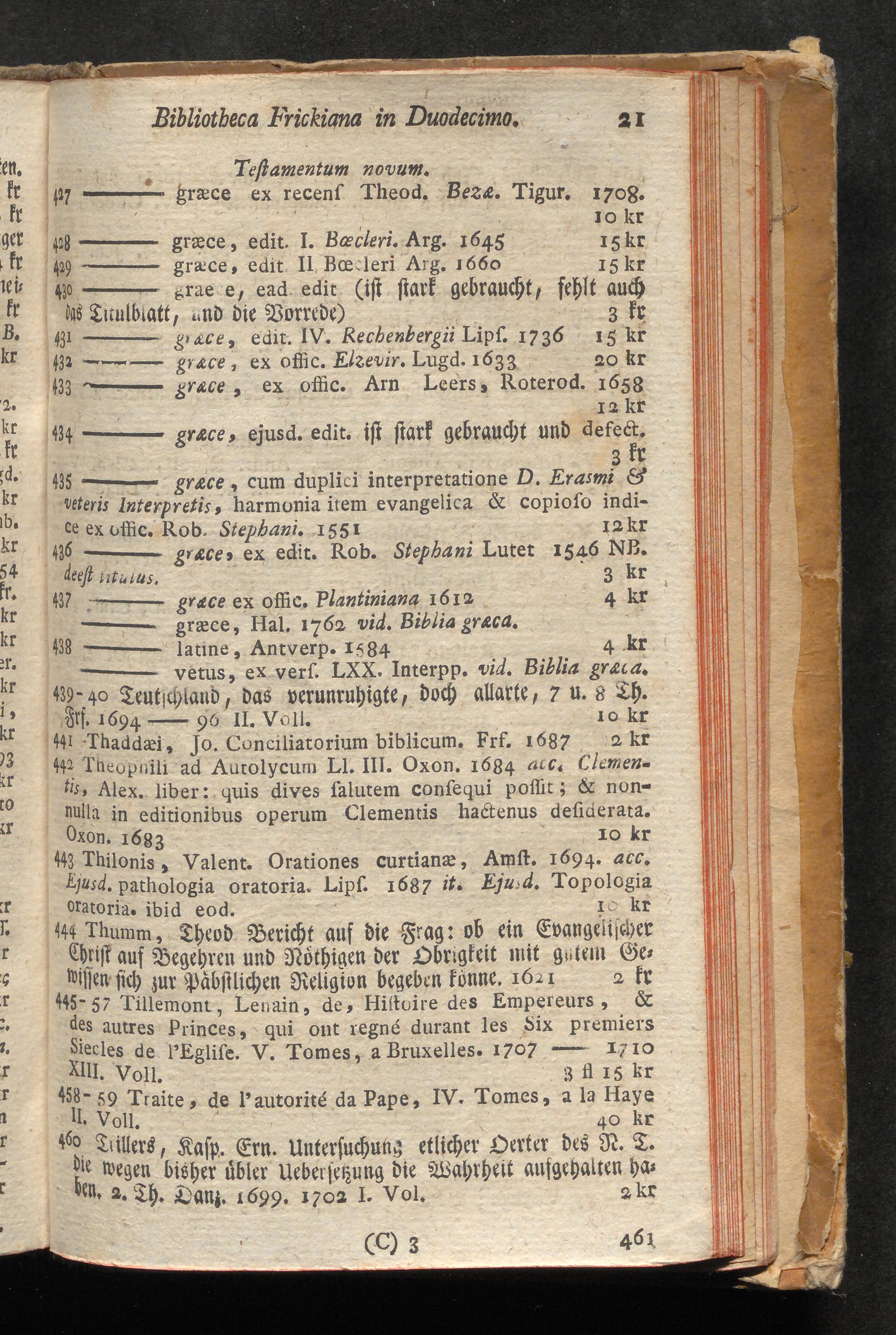 Catalogus Bibliothecae Frikianae : i. e. Apparatus Librorum quos a b. Parente cel. Joanne Frikio olim Eccles. Ulm. Antistite cet. hereditario iure acceptos insigniter & maximam partem adauxit Filius M. Albertus Frikius b. m. quondam in S. T. ibid. Ecclesiastes &c. ; quique nunc Augustæ Vindelicorum a Die XVI. Februarii MDCCLXXVIII. auctionis lege distrahentur