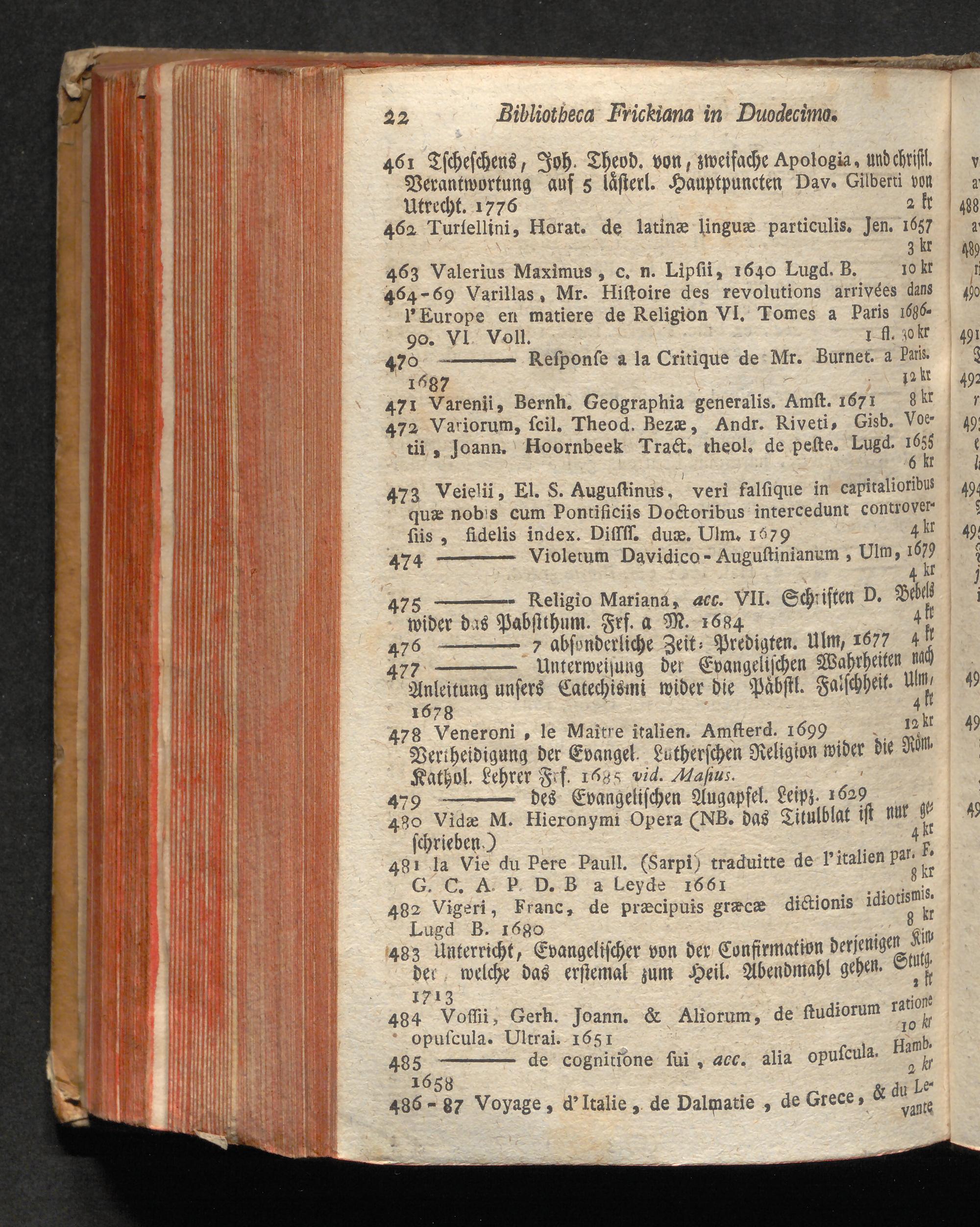 Catalogus Bibliothecae Frikianae : i. e. Apparatus Librorum quos a b. Parente cel. Joanne Frikio olim Eccles. Ulm. Antistite cet. hereditario iure acceptos insigniter & maximam partem adauxit Filius M. Albertus Frikius b. m. quondam in S. T. ibid. Ecclesiastes &c. ; quique nunc Augustæ Vindelicorum a Die XVI. Februarii MDCCLXXVIII. auctionis lege distrahentur