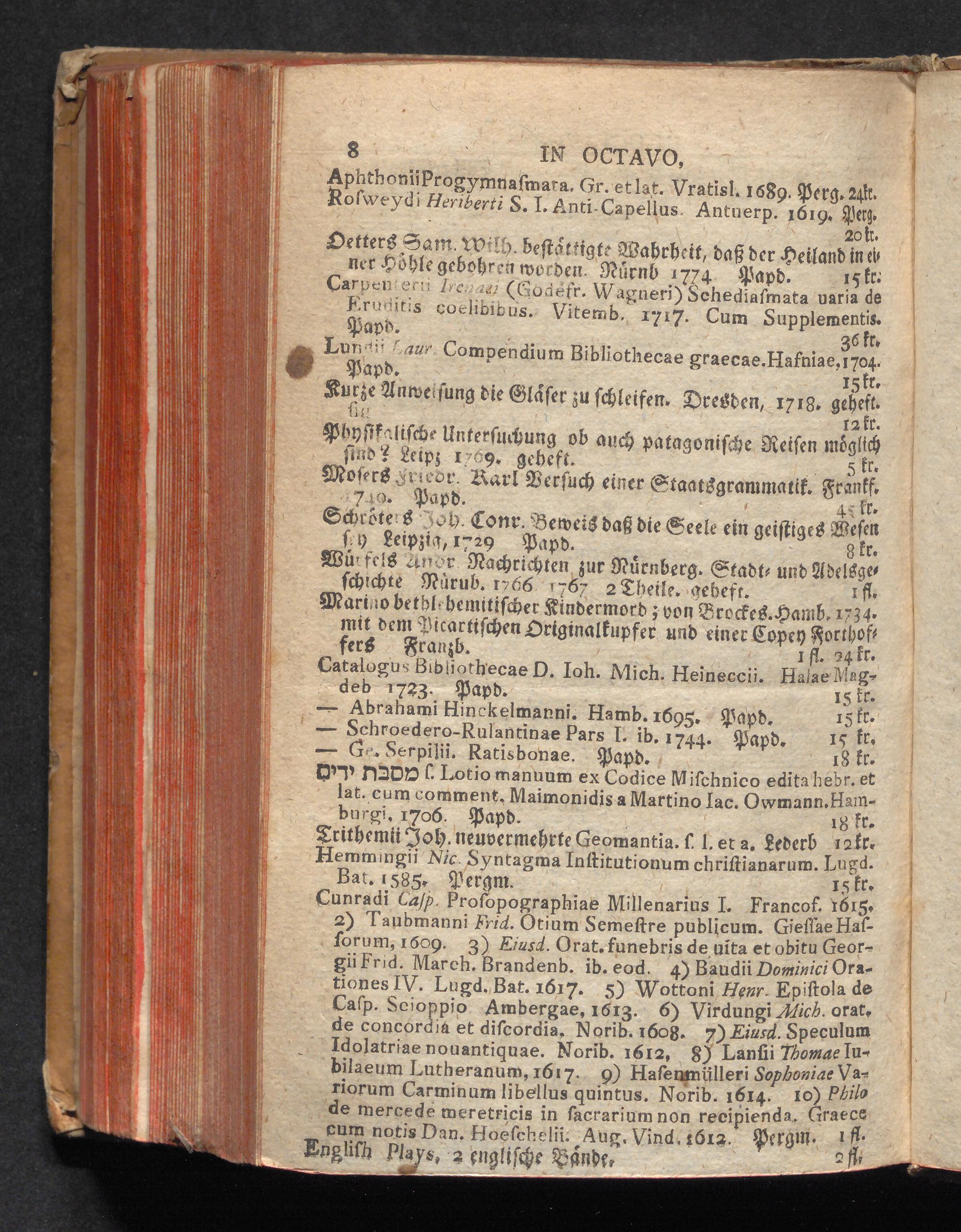 Verzeichniß brauchbarer gebundener Bücher : welche in beygesetzten wohlfeilen Preisen gegen baare Bezahlung bey George Peter Monath Buchhändlern in Nürnberg, in Commission zu haben sind