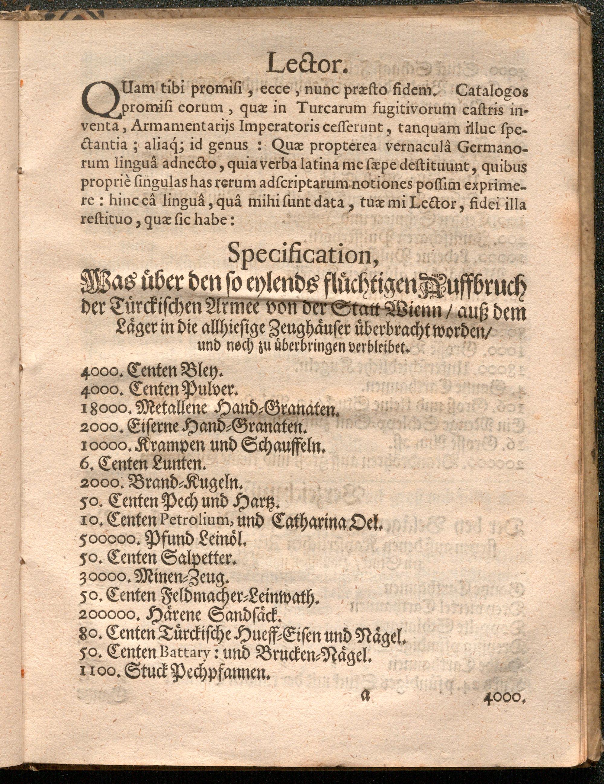 Vienna à Turcis Obsessa, à Christianis Eliberata : Sive Diarium Obsidionis Viennensis, Indè à sexta Maij ad decimam quintam usque Septembris deductum / Authore Joanne Petro à Vælckeren, Sacri Romani Imperij Equite, Sac: Cæs: Maj: Consiliario Aulico Bellico, Generali Auditore & Historiographo: unà cum typis æneis.