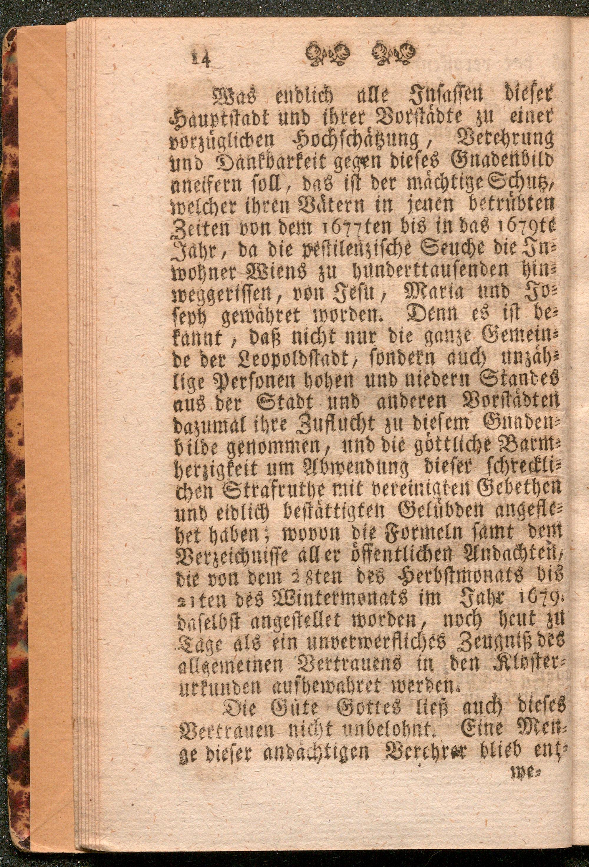 Hundertjähriges Jubelfest oder kurzer Bericht von dem Ursprunge, und Herkunft des anmüthigen Gnadenbildes Jesus, Maria, Joseph : welches durch hundert Jahre in der Ordenskirche der WW. EE. barmherzigen Brüdern zu Wien in der Leopoldstadt wegen vielen daselbst von Gott ertheilten Gnaden und Wohlthaten, zumalen wegen hülfreichen Schutz und Beystand zur Zeit der pestilenzischen Seuche, andächtig verehrt wird : Nebst beygefügten Gebethern und Litaneyen, zum Gebrauche derjenigen, die bey der, in diesem Jubeljahr angestellten feyerlichen neuntägigen Andacht, in besagter Kirche erscheinen, und sich des daselbst zu gewinnenden vollkommenen Ablasses theilhaftig machen wollen