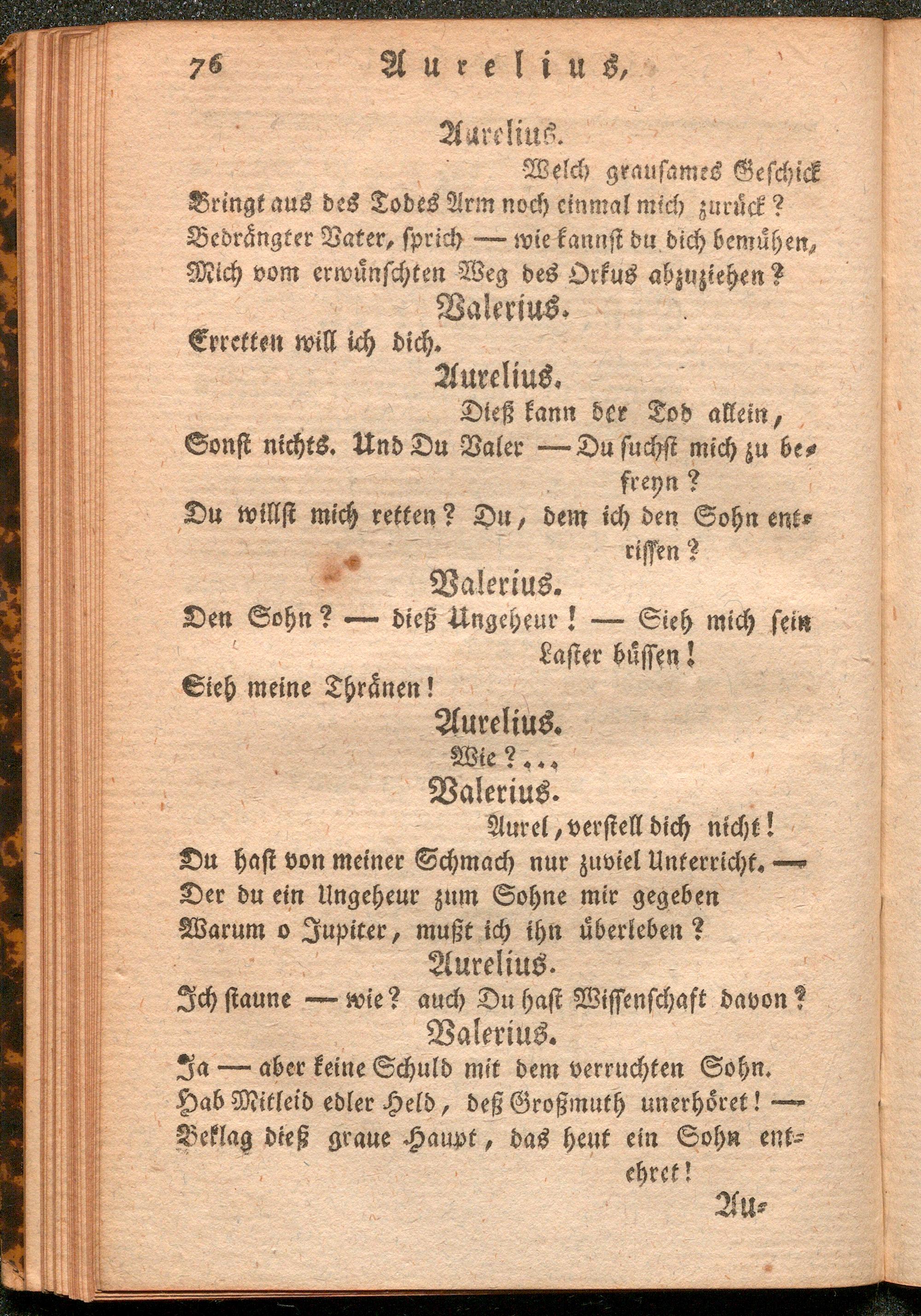 Aurelius oder Wettstreit der Großmuth : Ein Trauerspiel in Versen und fünf Aufzügen / [Cornelius Hermann von Ayrenhoff]