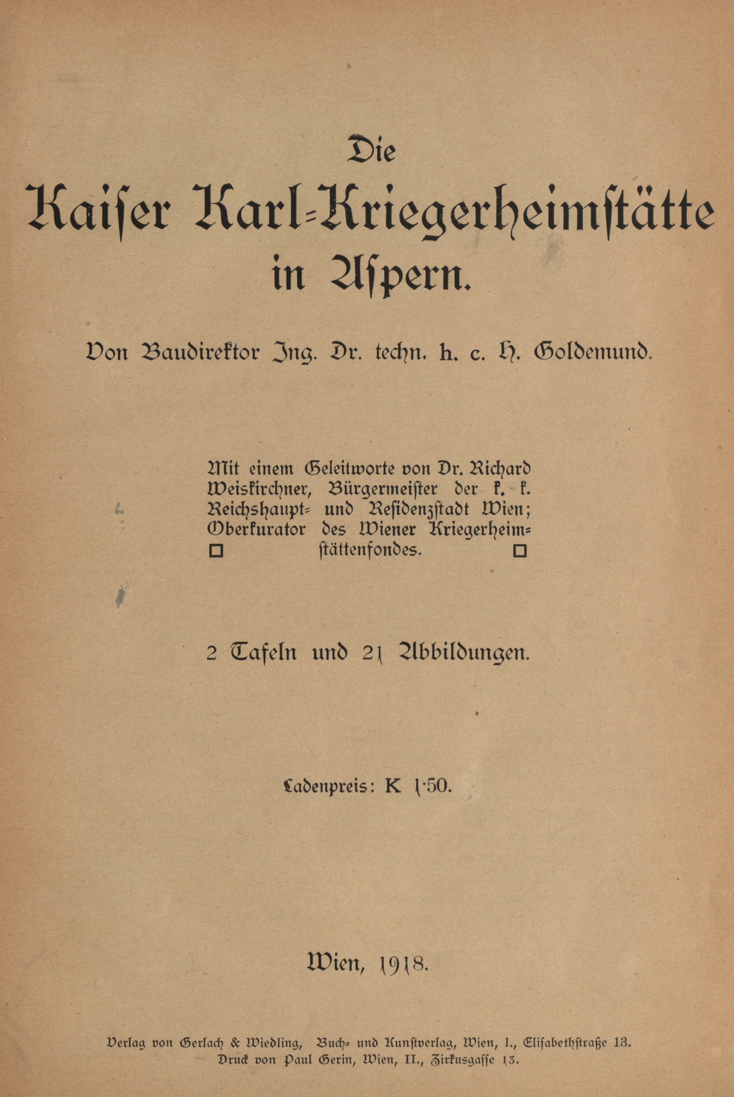 Die Kaiser Karl-Kriegerheimstätte in Aspern / von H. Goldemund. Mit einem Geleitworte von Richard Weiskirchner