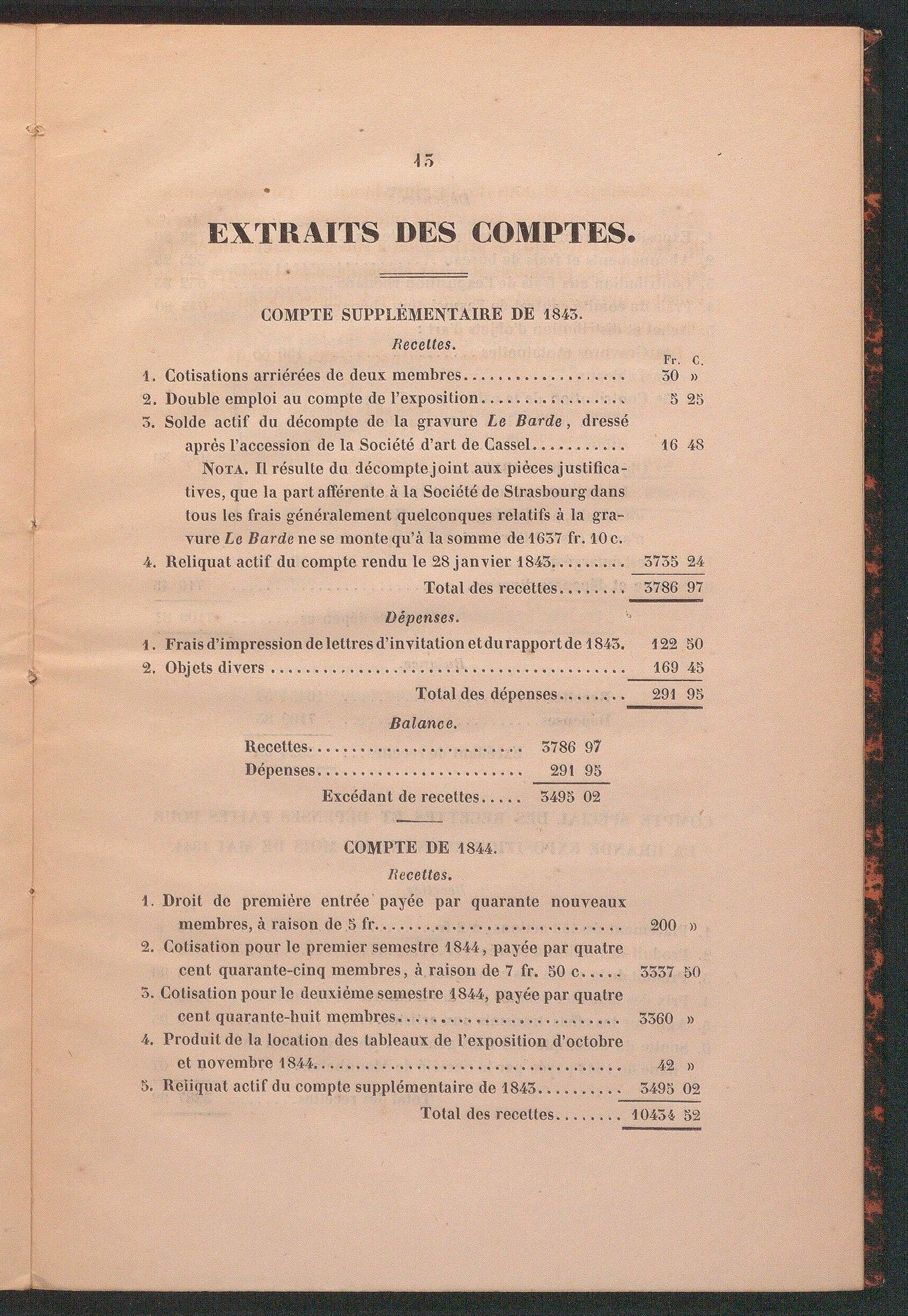 Société des amis des arts de Strasbourg : autorisée par désision de M. le ministre de l'intérieur du 12 juillet 1832 ; Compte rendu par le comité en assemblée générale du 2 février 1845